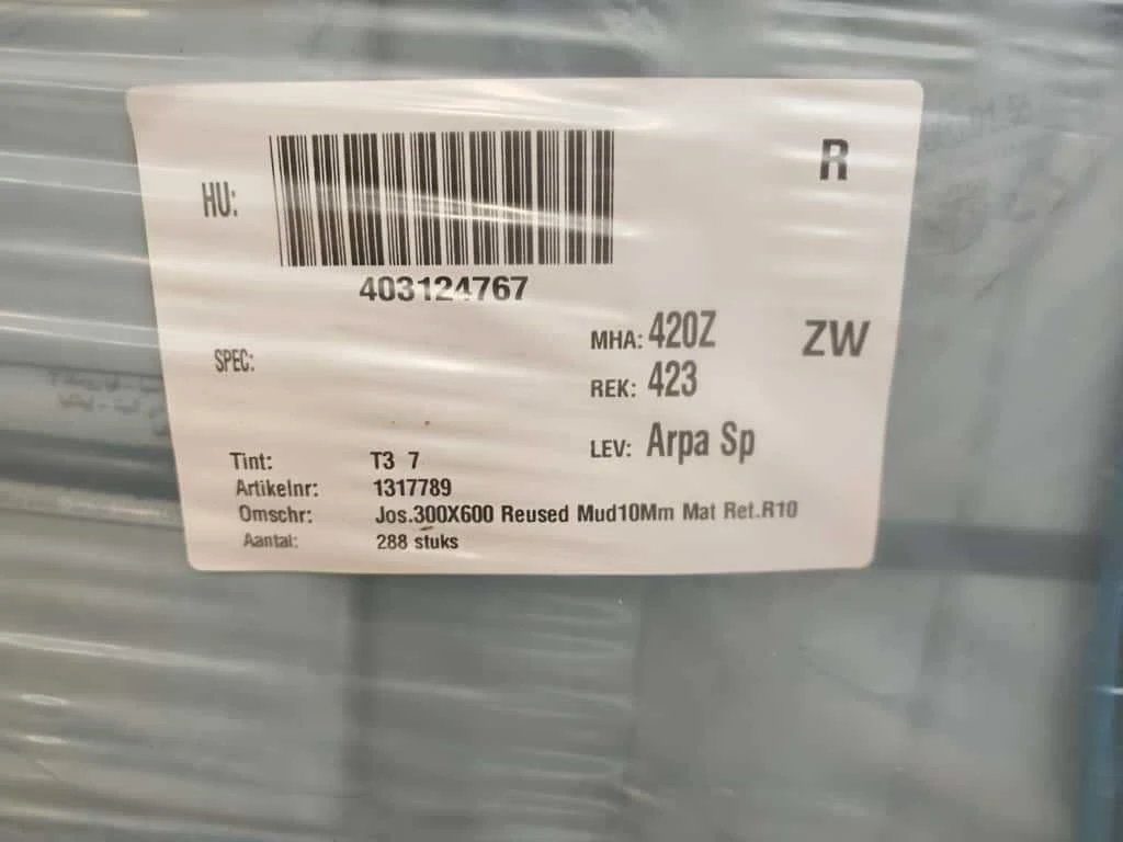 Merk: Arpa Kleur: Mud Afwerking: Mat R10 Lengte: 300mm Breedte: 600mm Dikte: 10mm Materiaal: Keramiek Type: Vloertegel Model: Reused Aantal m² per verpakking: 1.08m² Aantal pakken: 48 Totaal oppervlakte: 51.8m² Totaal gewicht: 1040kg