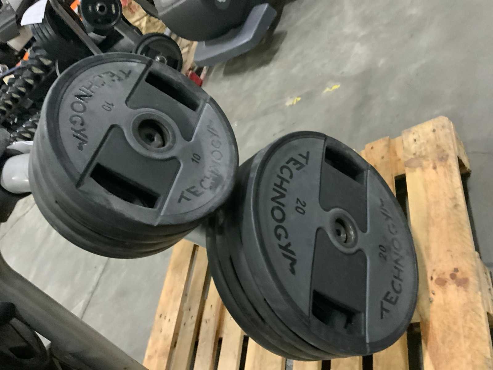 Technogym pu schijven 50mm met rek 12x20kg;8x10kg;4x2,5kg;2x1,25kg krachtstation