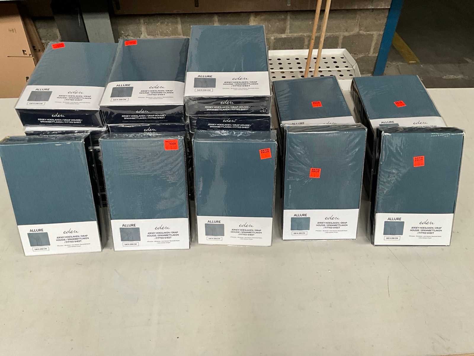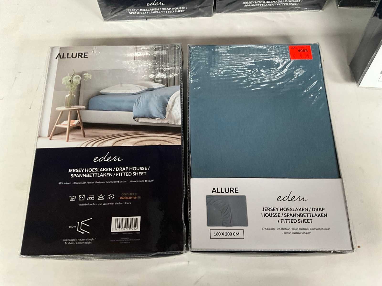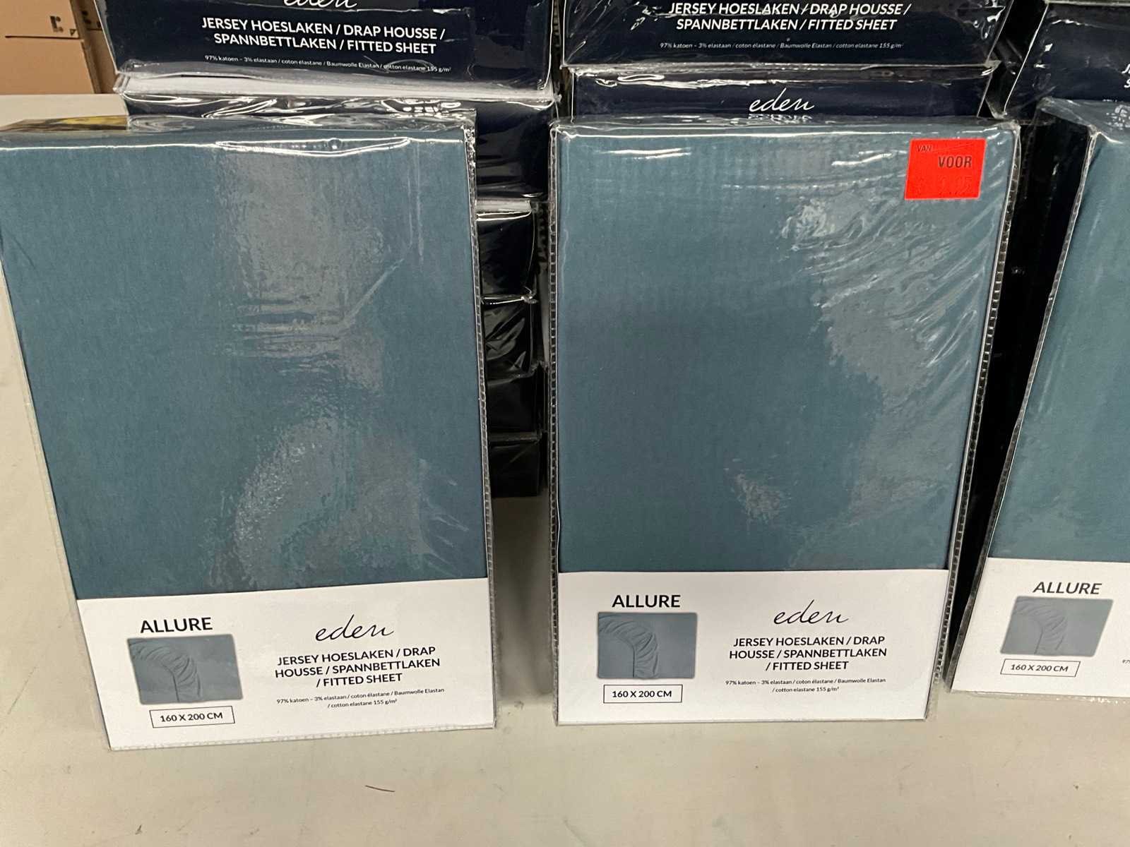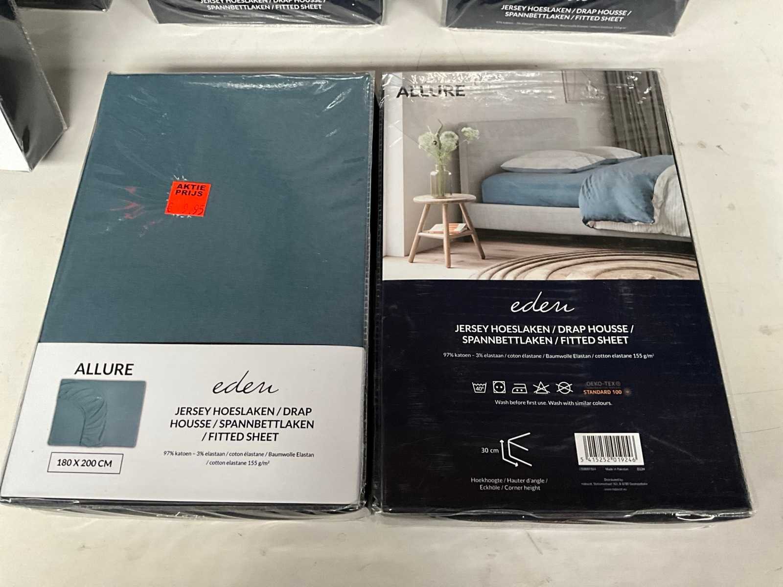 Kavel bestaande uit; 22x hoeslaken 160 x 200 cm, 10x hoeslaken 180 x 200 cm. Merk: Eden Kleur: Blauw