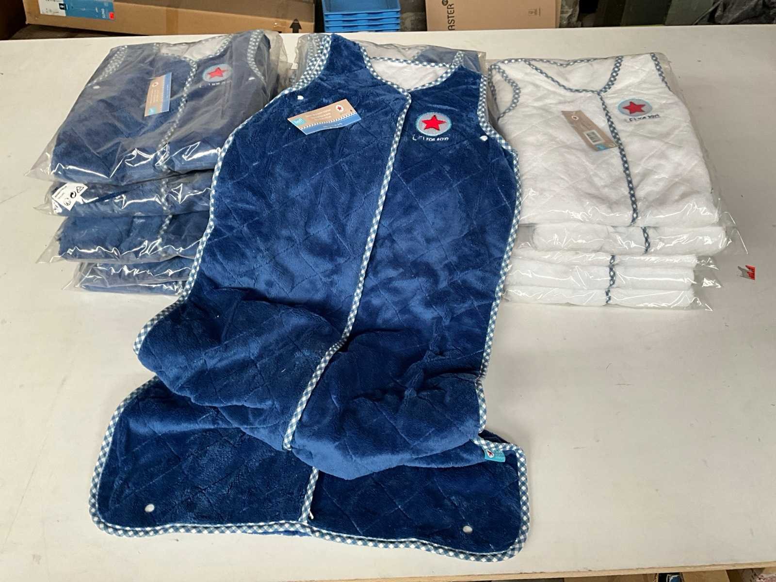 Kavel bestaande uit; 5x slaapzak wit, 11x slaapzak blauw. Merk: Lief! Kleur: Wit, blauw