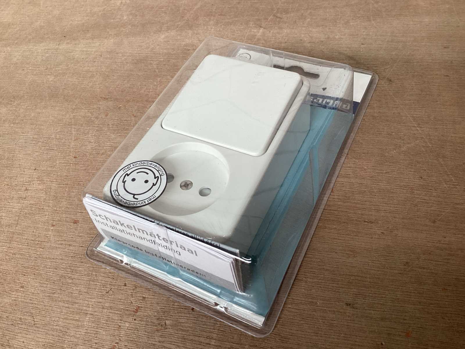 Opbouwcombinatie, wandcontactdoos met randaarde en serieschakelaar, in blisterverpakking, wit