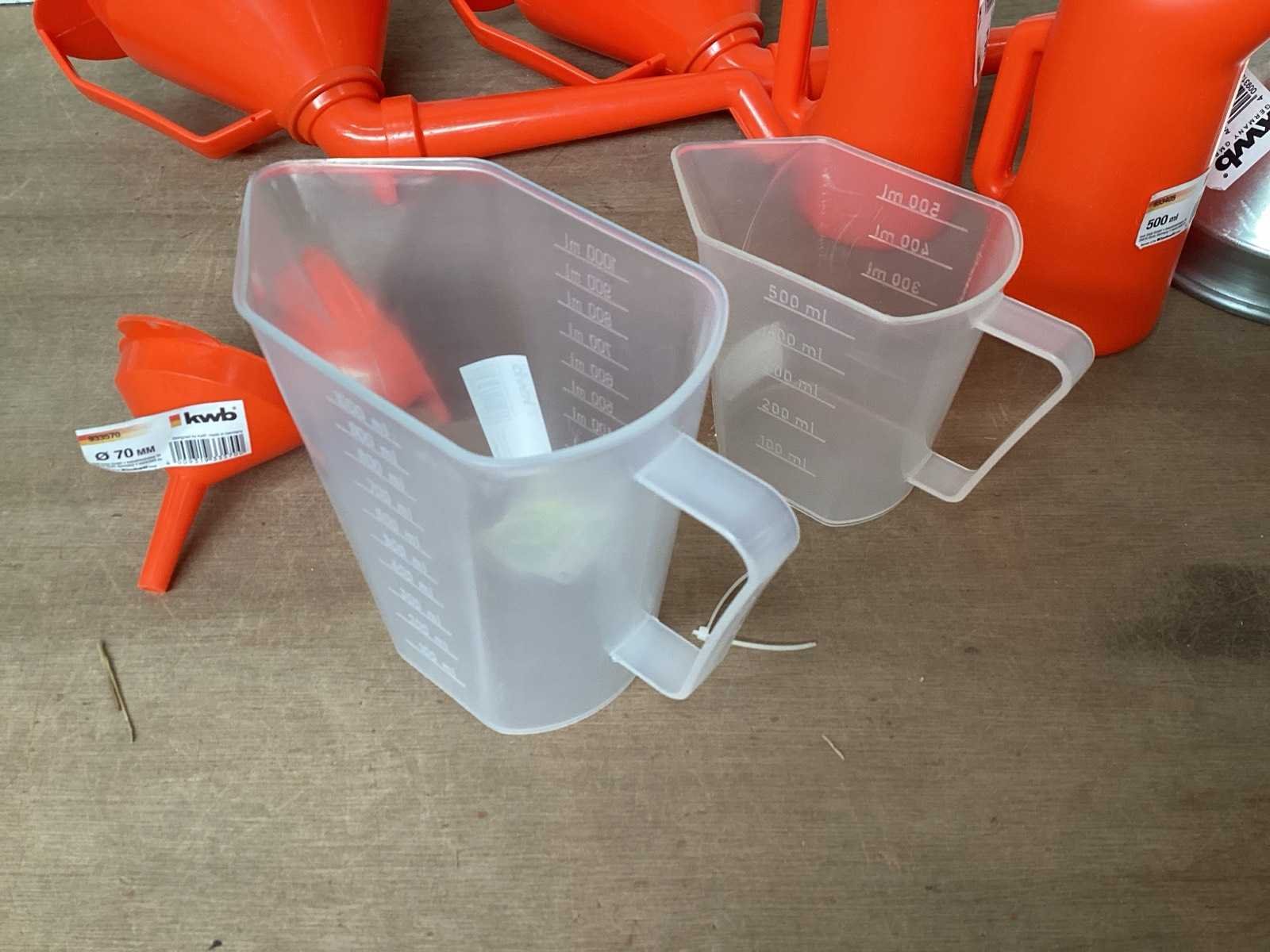 Mix kavel diverse maatbekers en trechters Merk: KWB