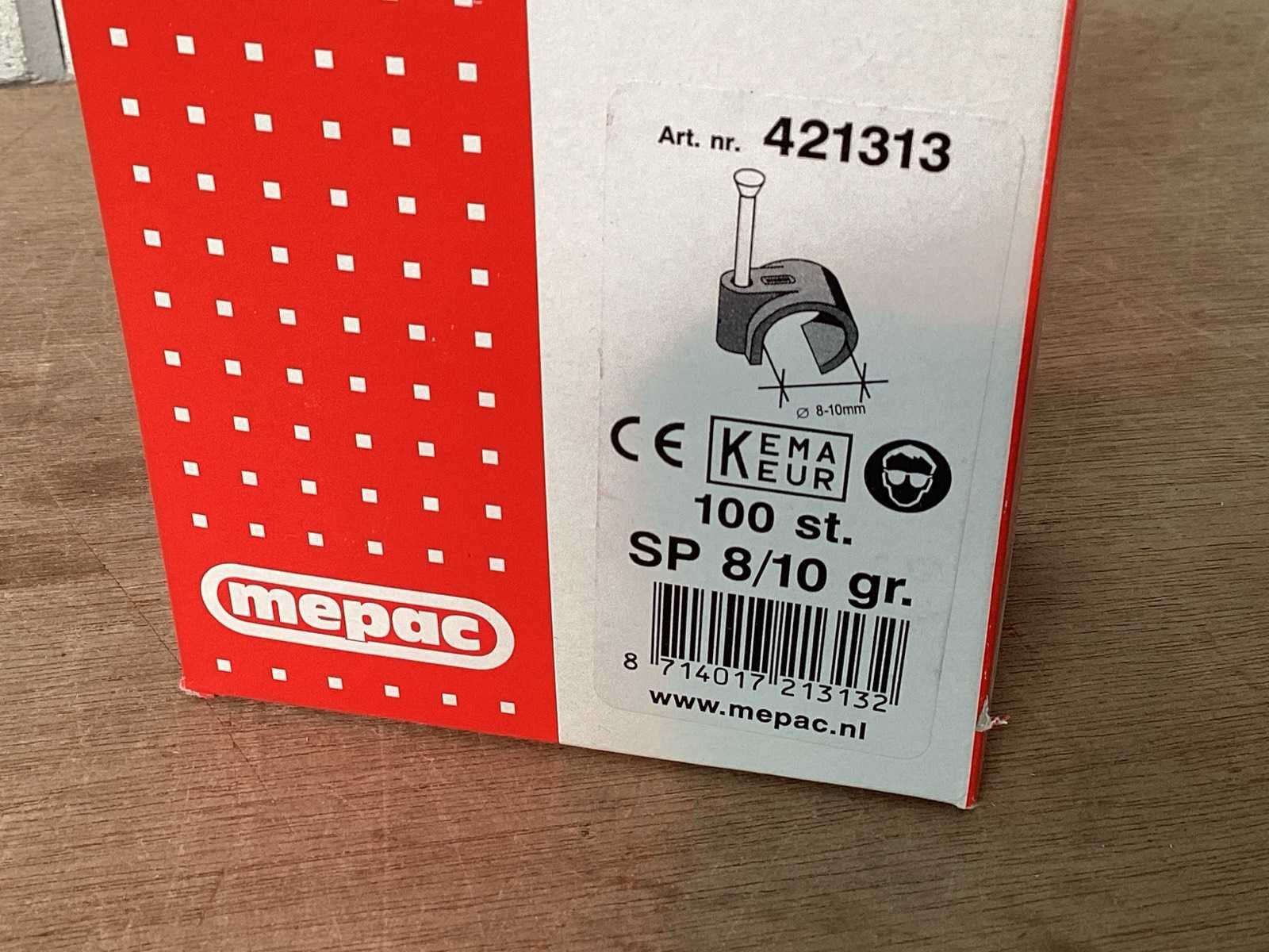 Kabelclip 8-10 mm, stalen nagel, doos 100 stuks Merk: Mepac Model: 421313