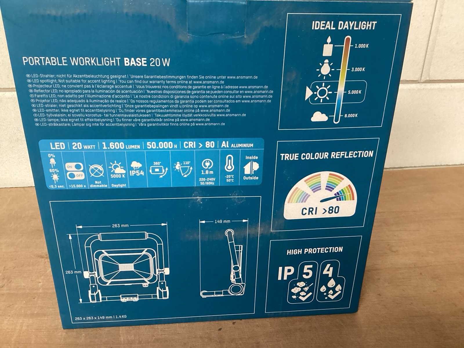 Bouwlamp 20 watt, met statief, Merk: Ansmann LED: true