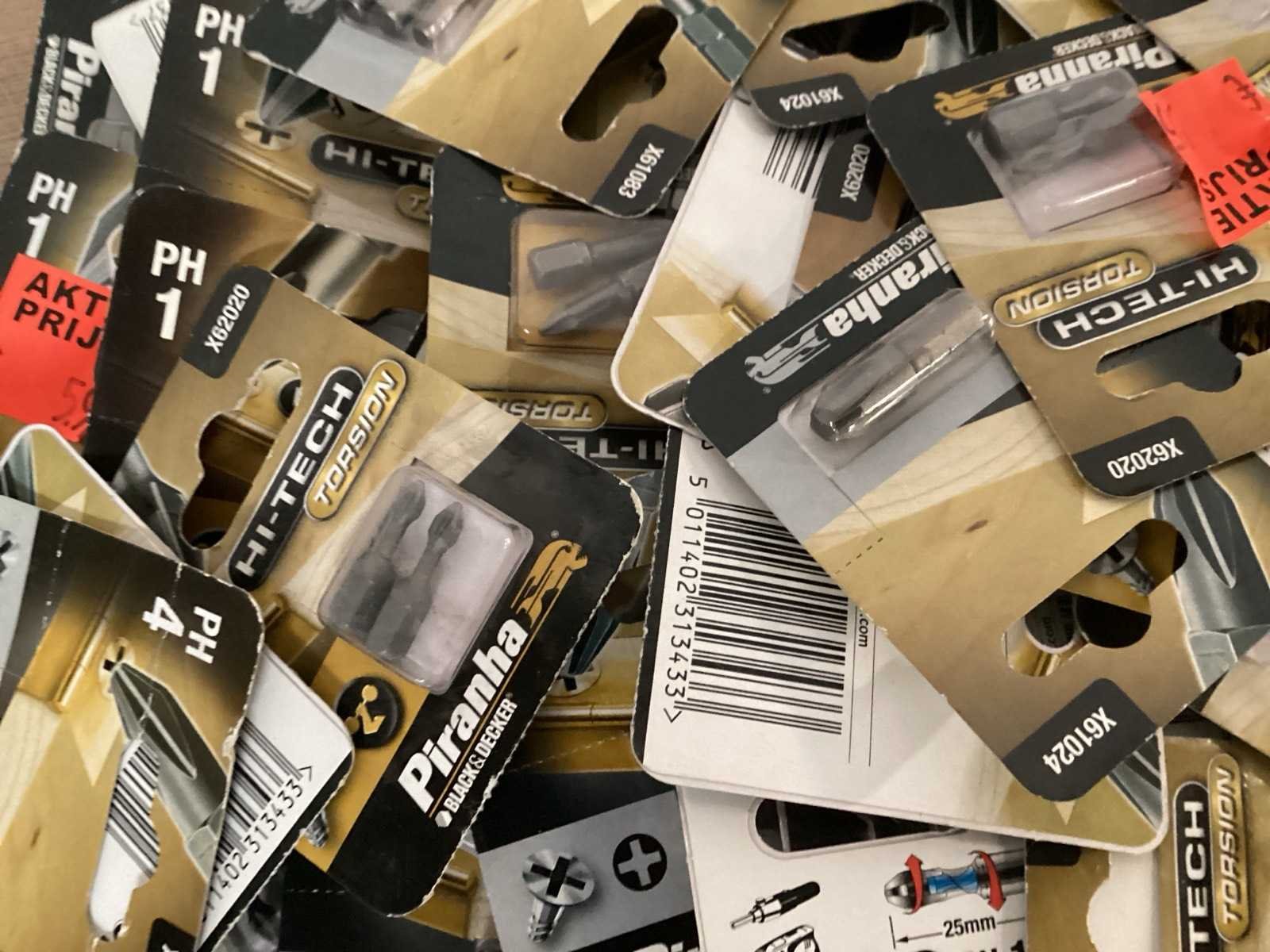 Diverse schroefbits in blister verpakking. 200 verpakkingen Merk: Piranha