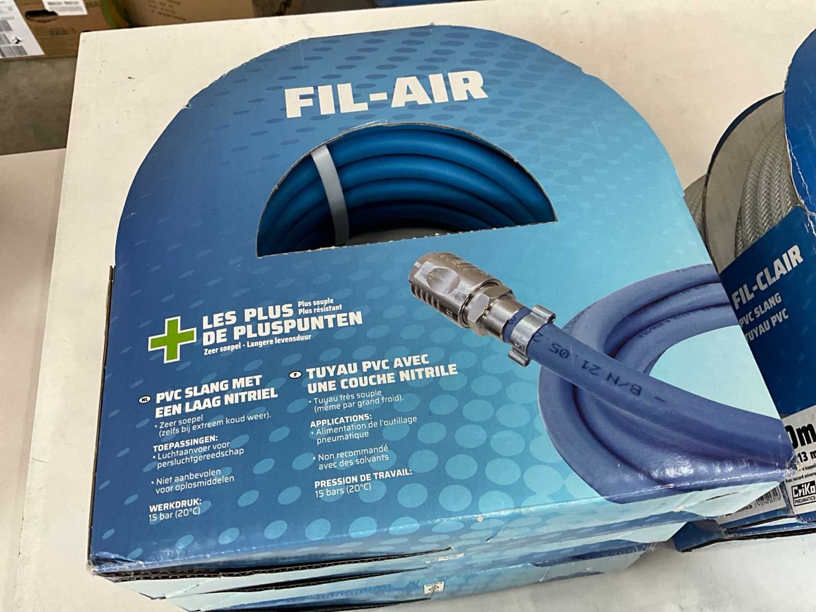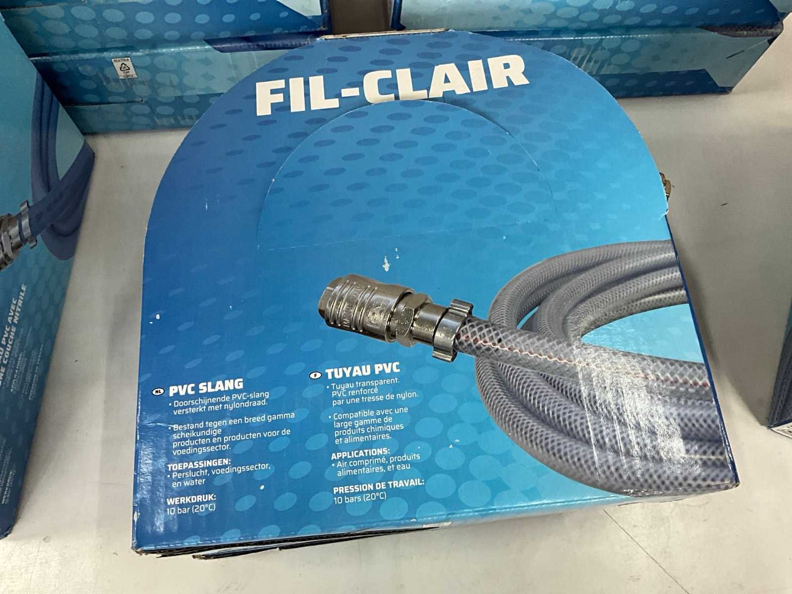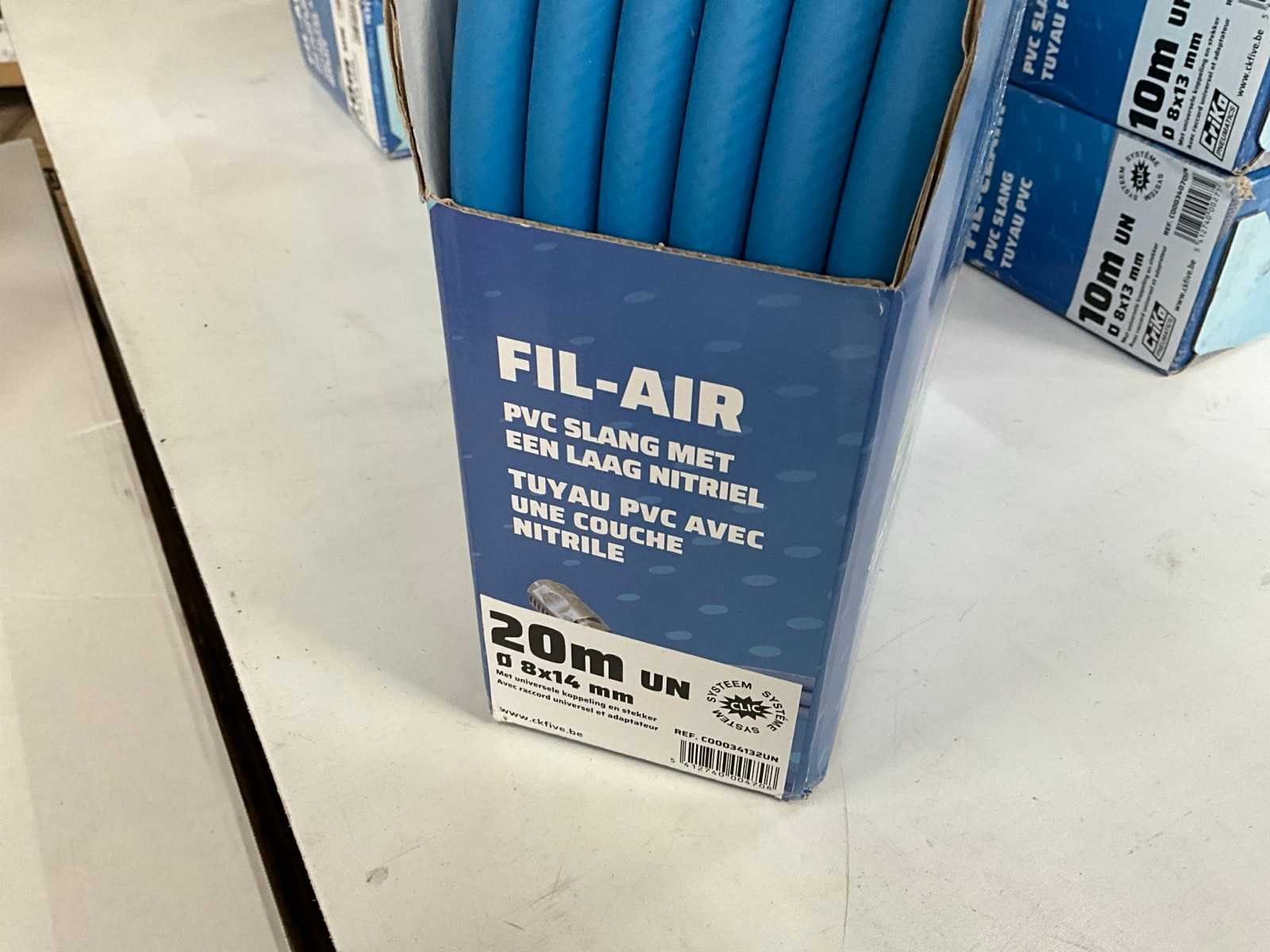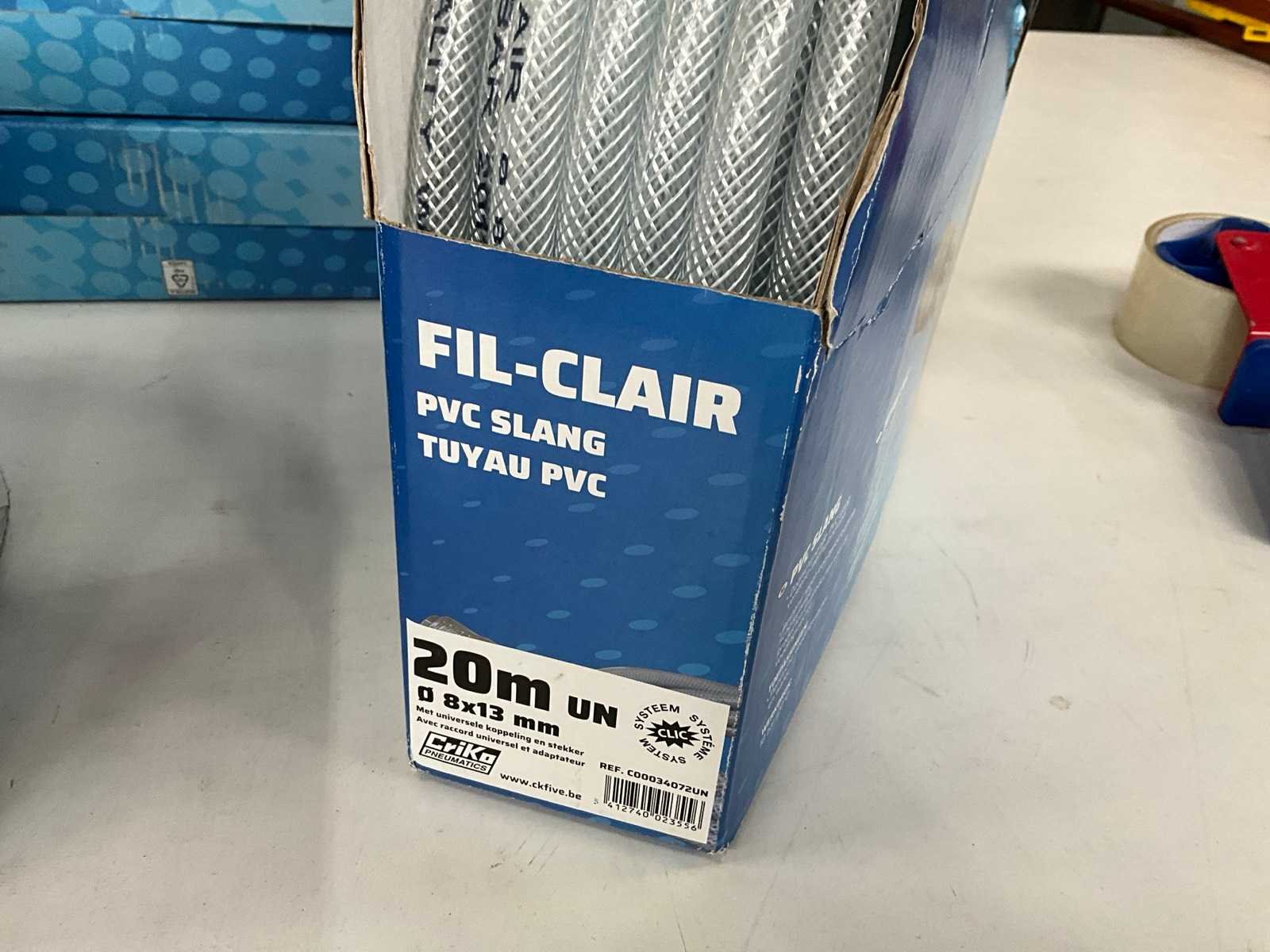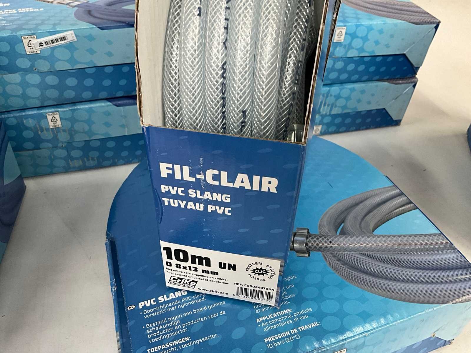 Kavel bestaande uit; 3x pvc slang met een laag nitriel 20 m, 3x doorschijnende pvc slang versterkt met nylondraad 20 m, 2x doorschijnende slang pvc slang versterkt met nylon draad 10 m. Merk: Criko
