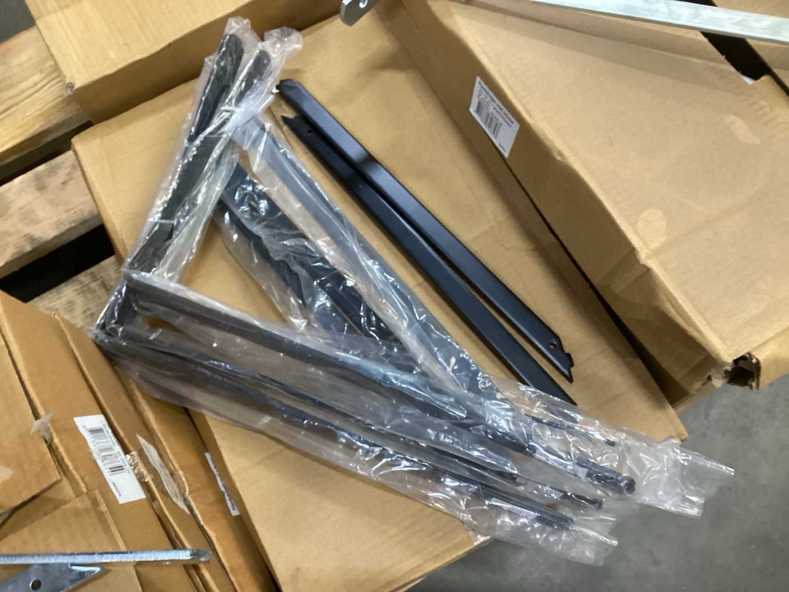 Mix kavel diverse plankdragers, zwart, wit en gegalvaniseerd, diverse afmetingen, circa 100 stuks Merk: Starx