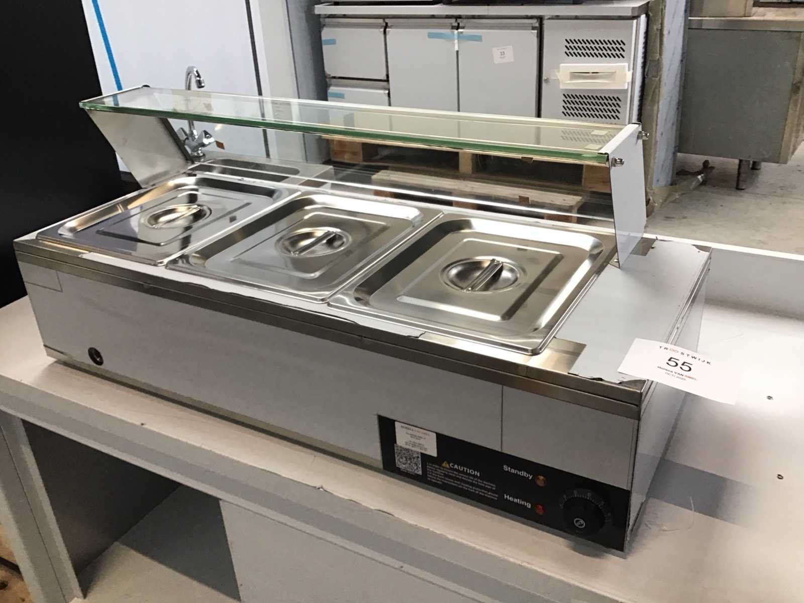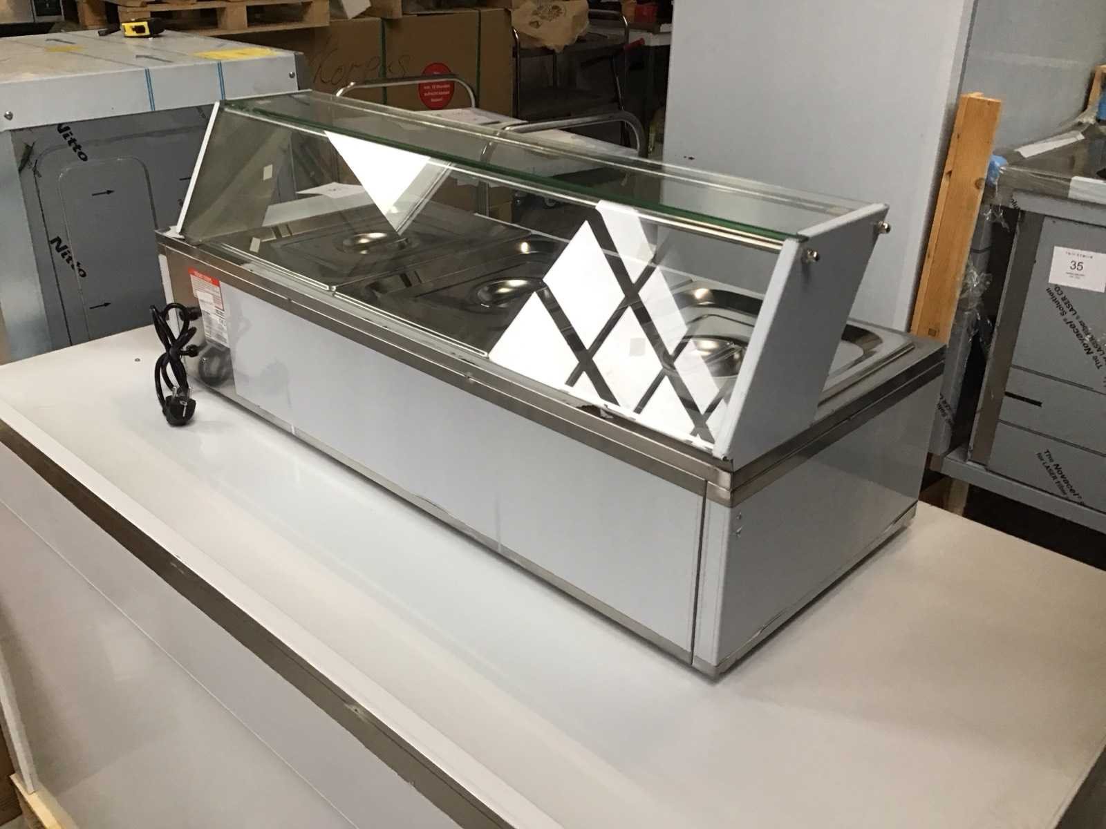 Ongebruikt Totale afmeting L: 37cm Totale afmeting Breedte: 93cm Totale afmeting Hoogte: 40cm Vrijstaand: true Inbouw: true Capaciteit: 1/2GN Rvs: true Regelbare thermostaat: true Aansluiting: 220V