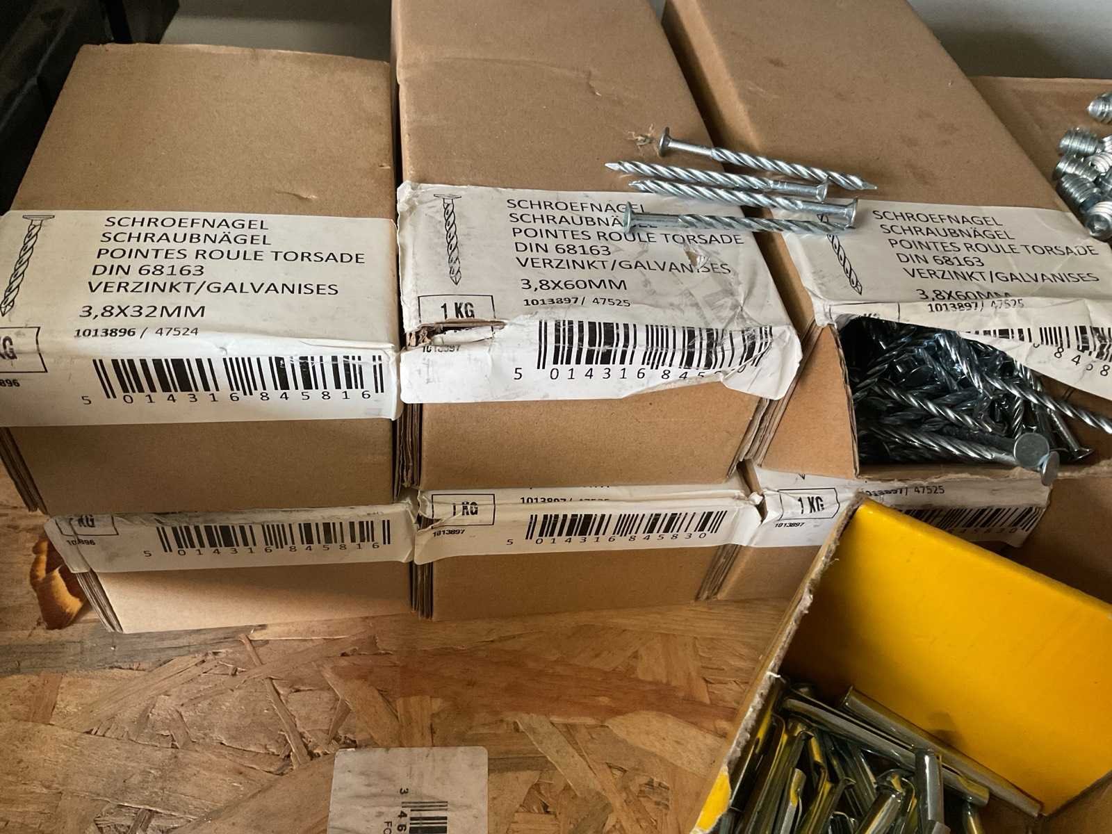Dozen gedraaide nagels en hout moeren