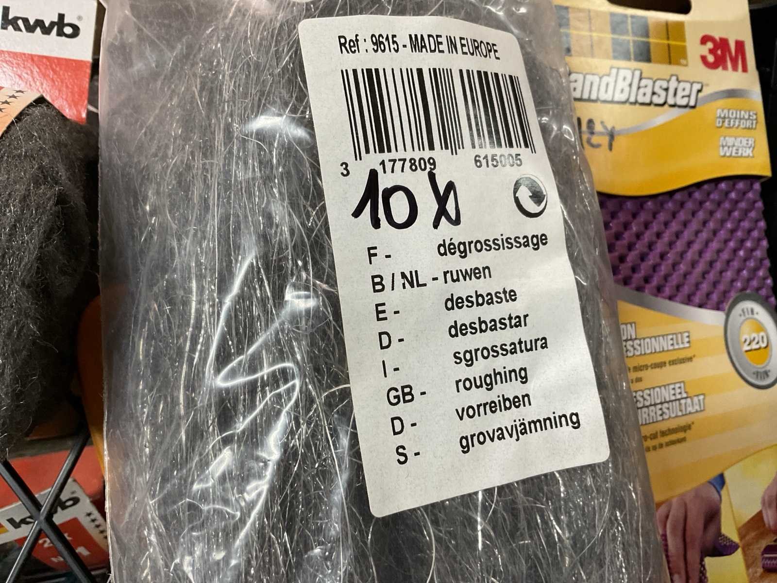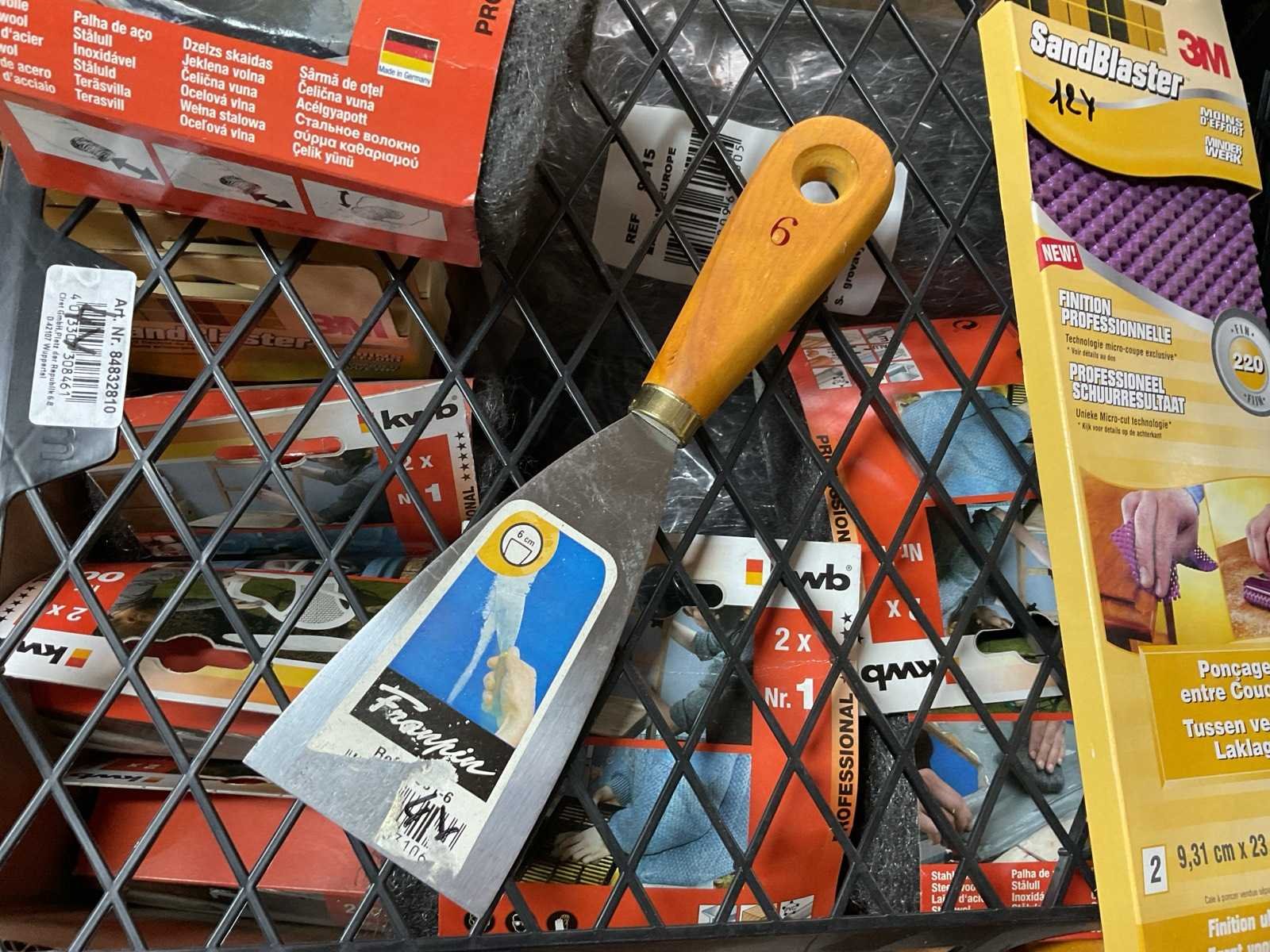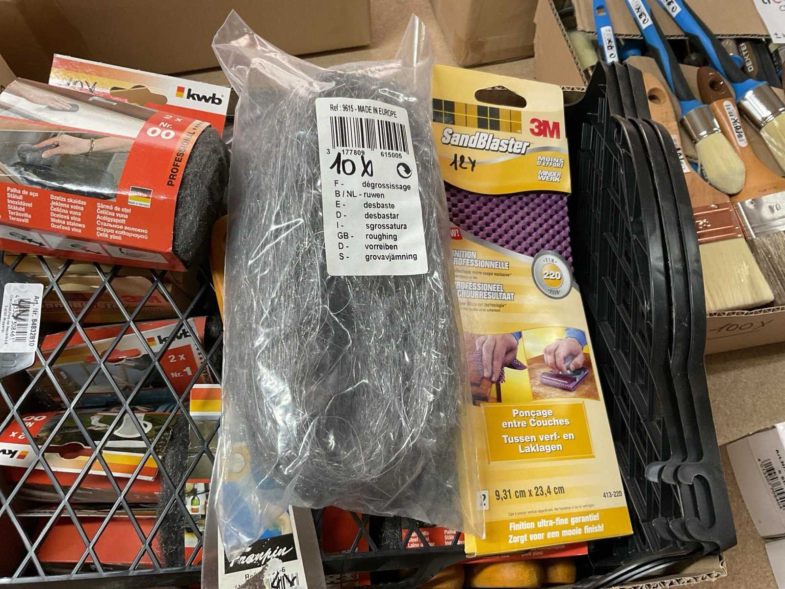 Schuurwol; verfroosters; plamuurmessen; staalwol; flexibele schuurpad