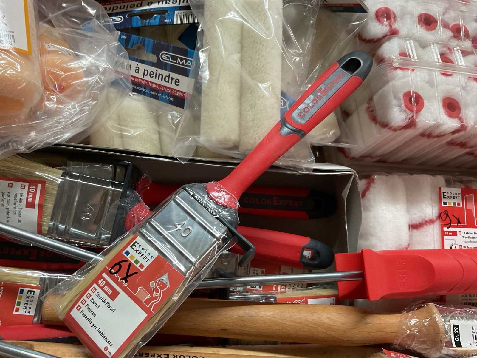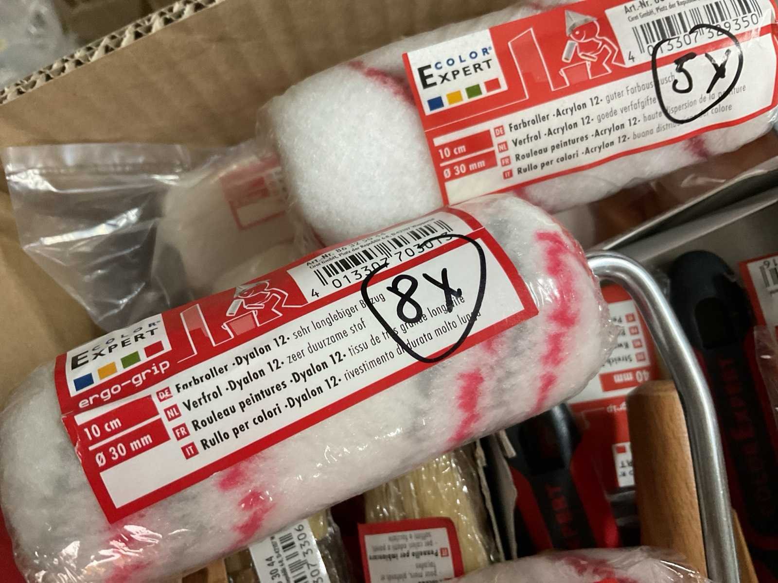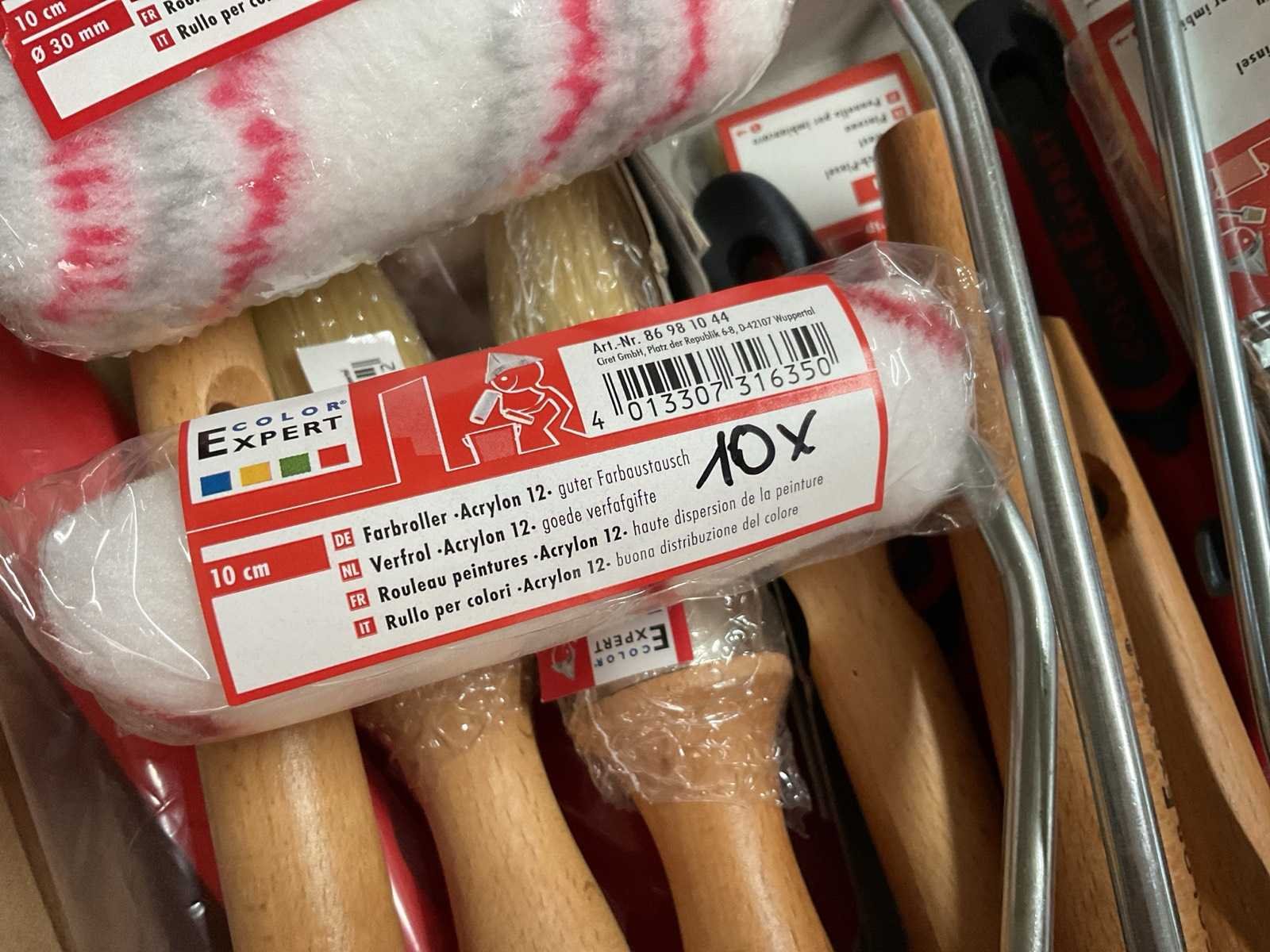 Reserverollenset; verfrol met beugel; kwasten; reserverollen