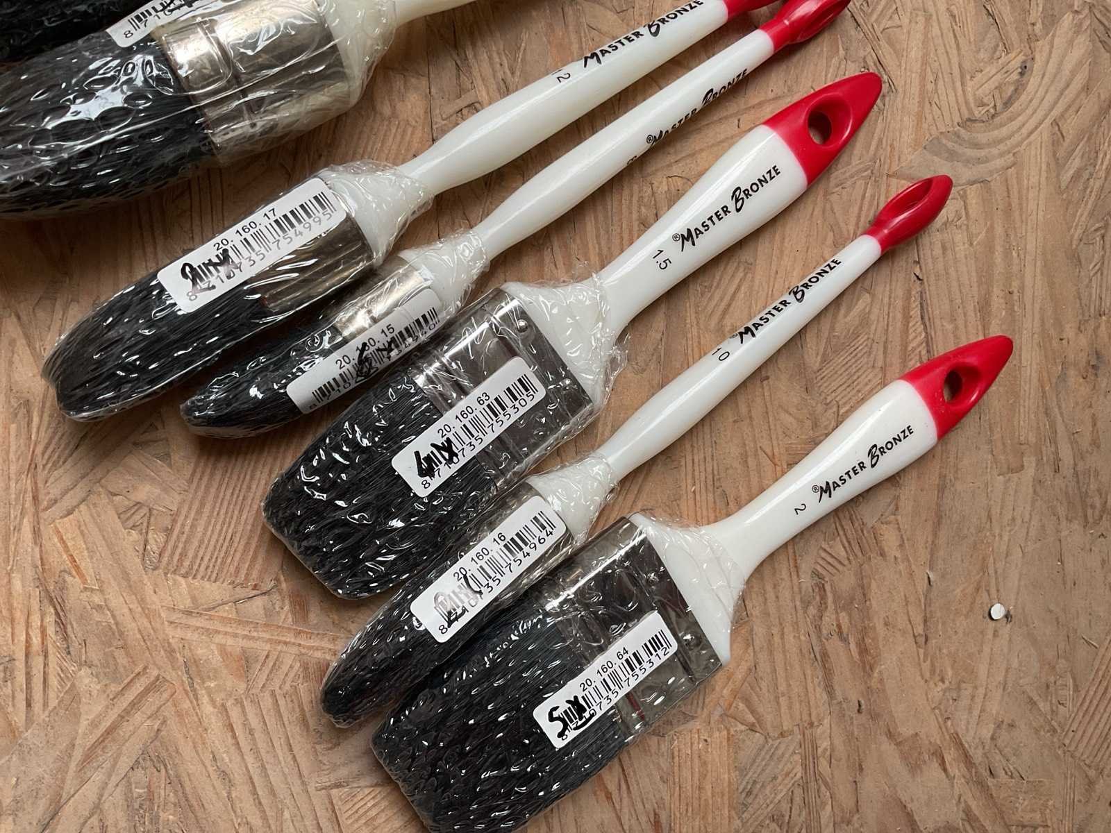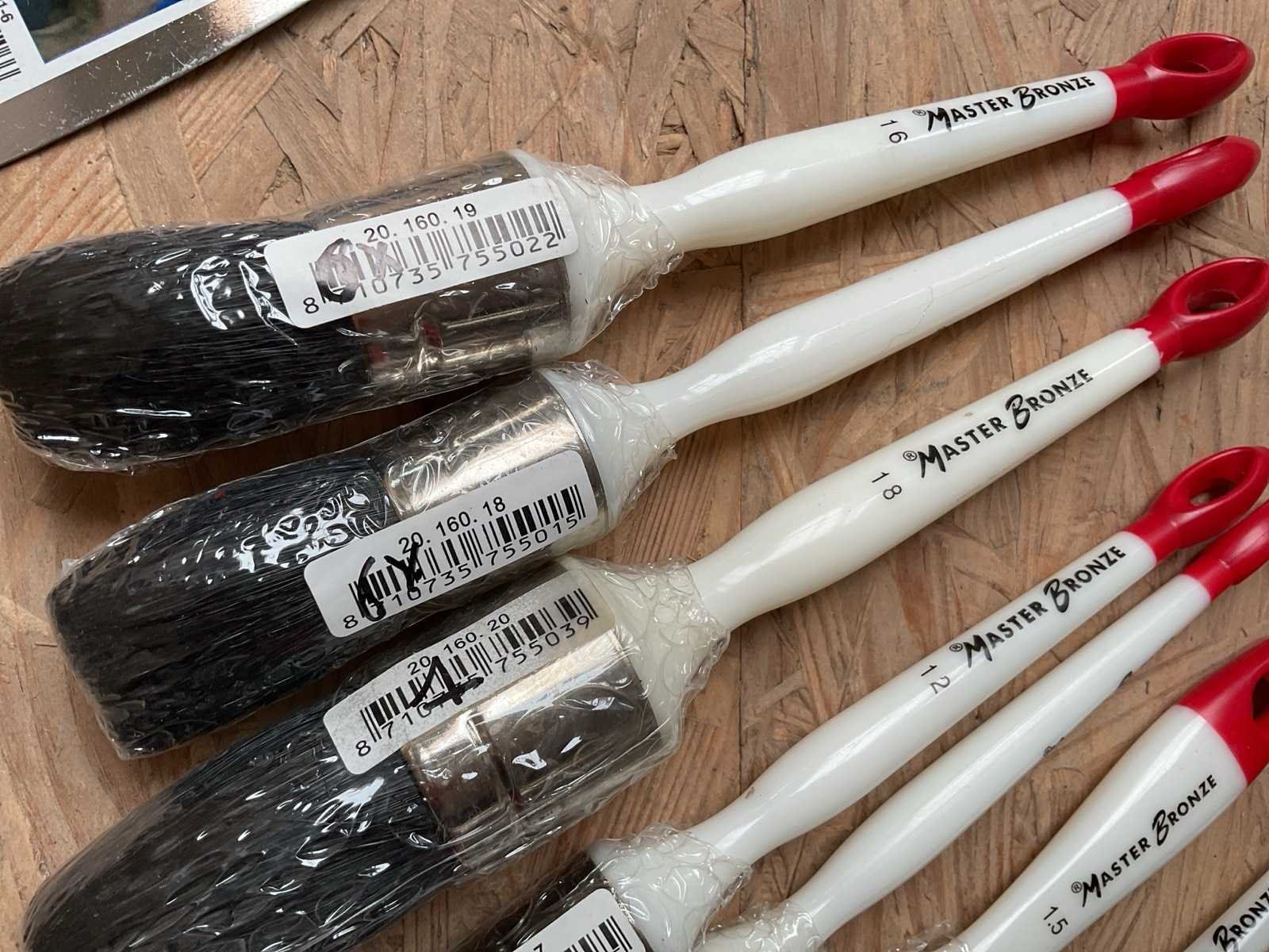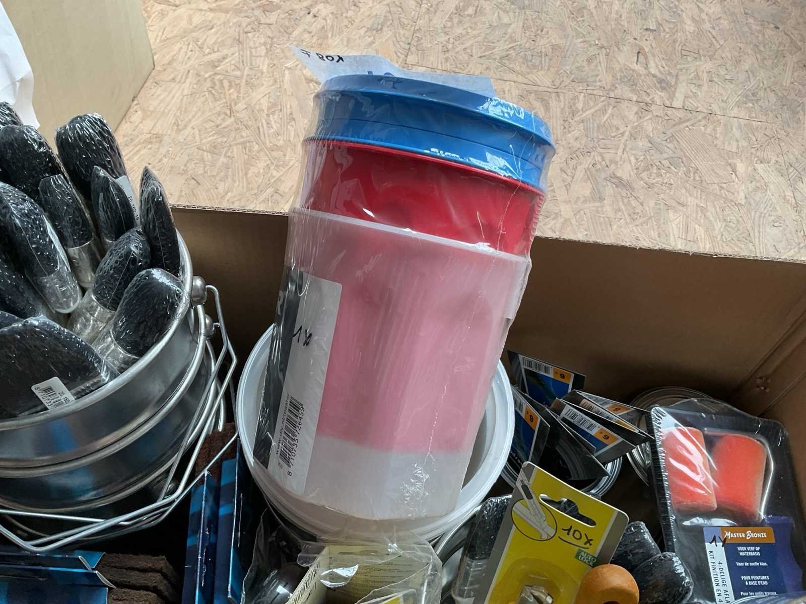 Verfpot; verfkwasten; snijmessen; plamuurmessen; verfrolset; schuurpads