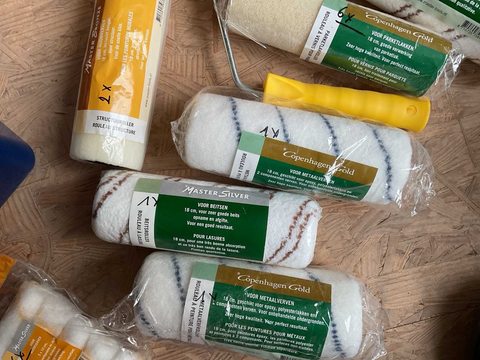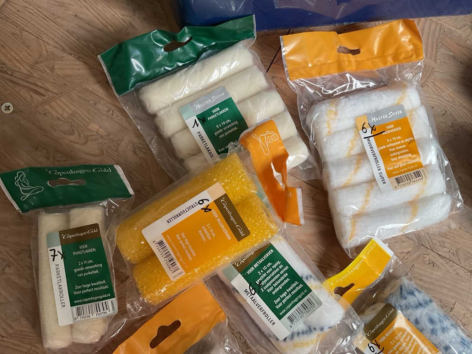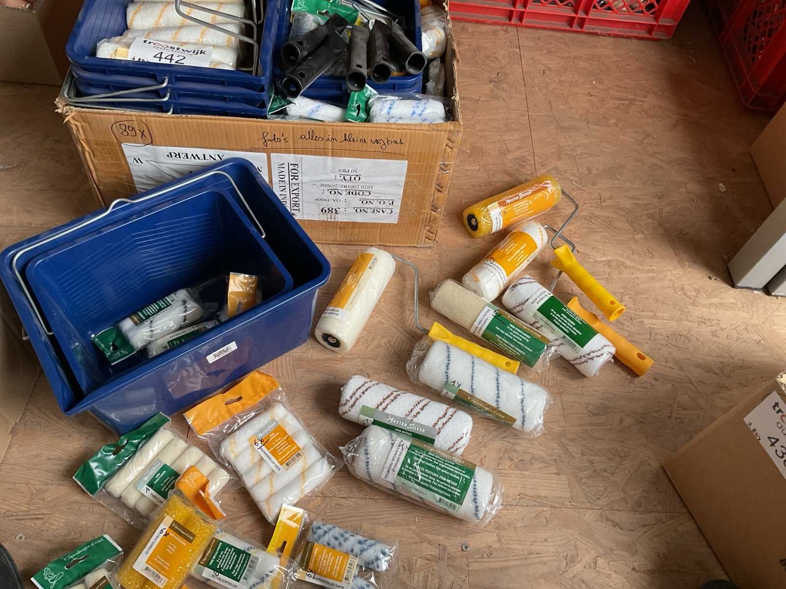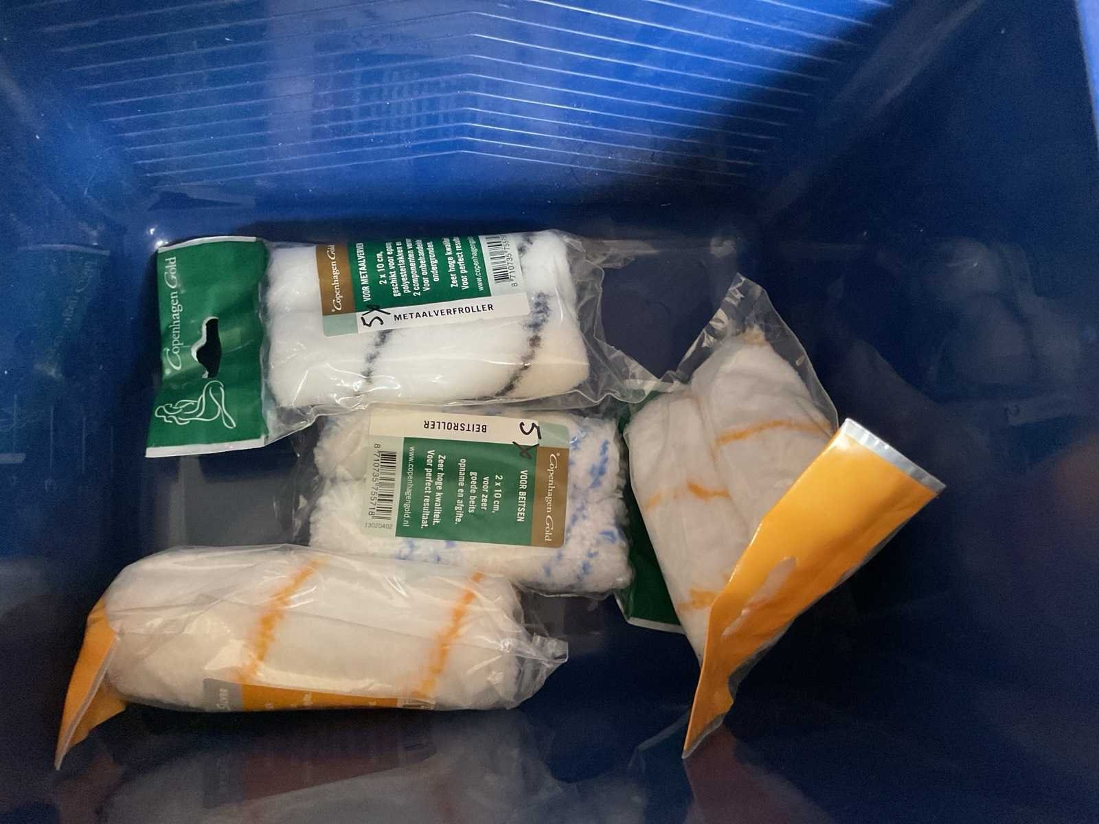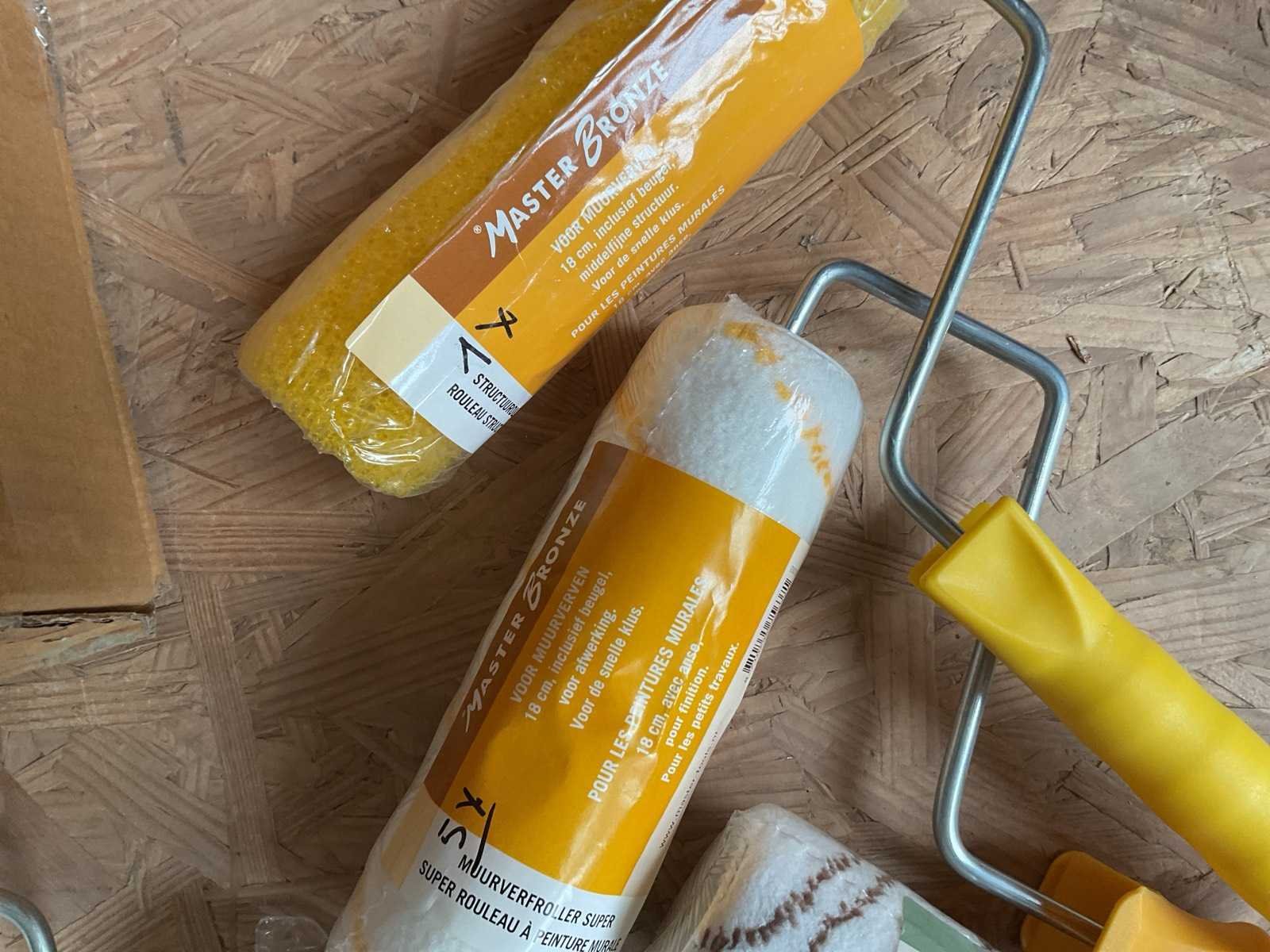 Verfrol met beugel voor muurverf; verfbakken; reserverollen