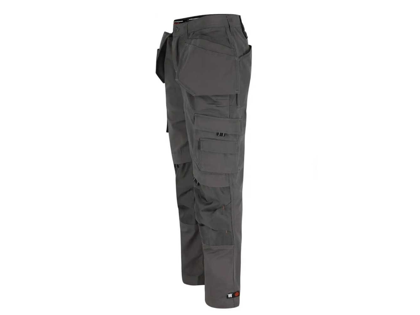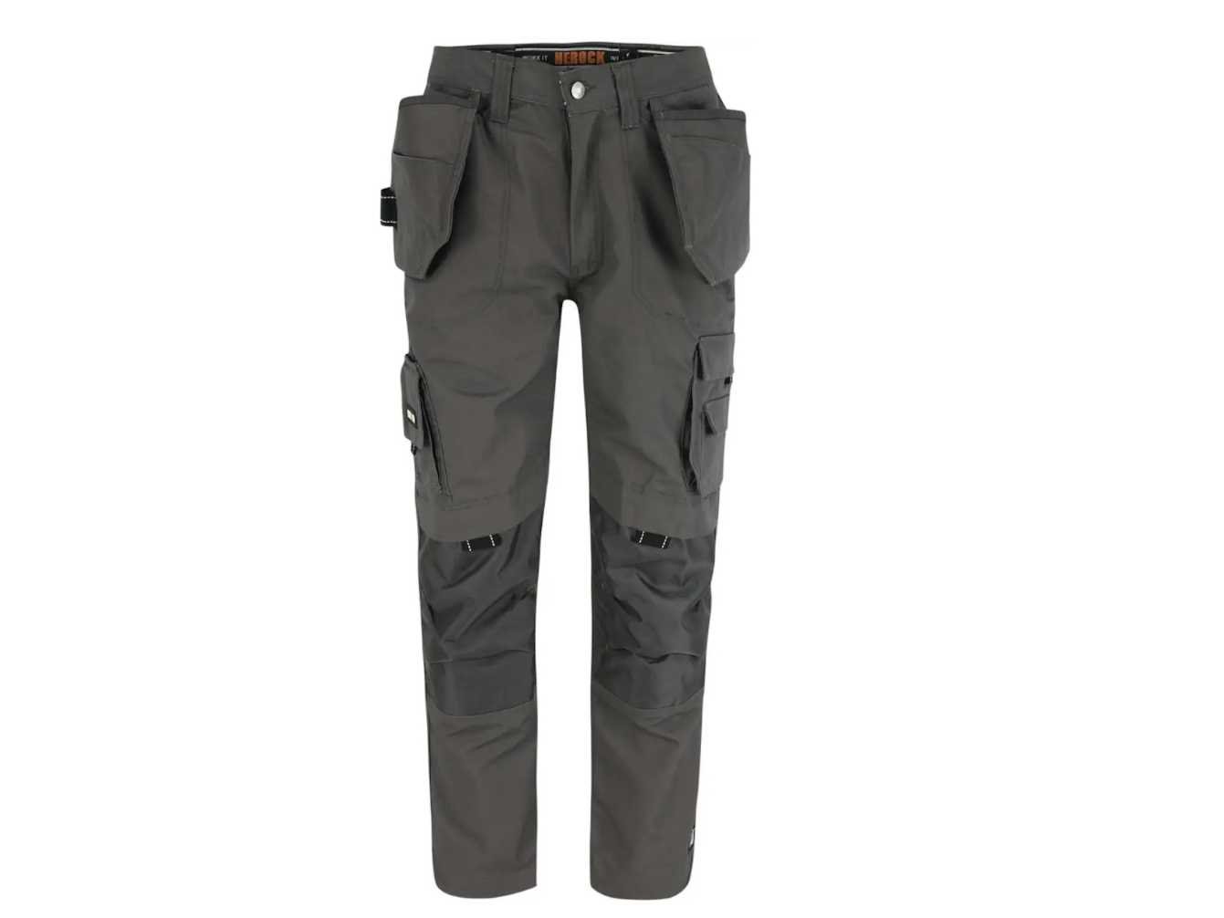 Waterafstotende broek meerdere zakken en vaste spijkerzakken; verstelbare tailleband; hamerlus; achterzakken; duimstokzak Merk: Herock Model: Dagan Troussers Maat: 44 Kleur: Grijs