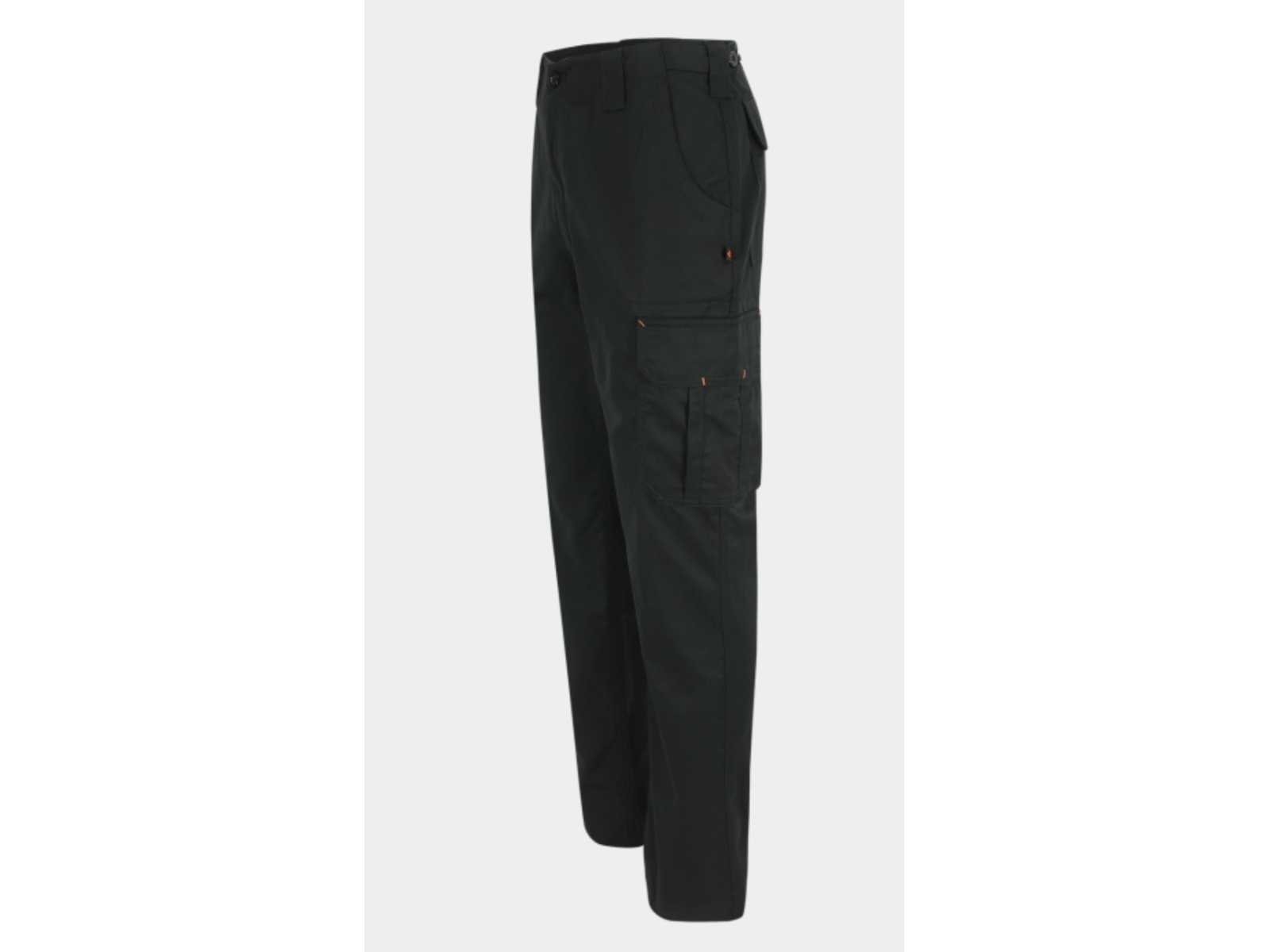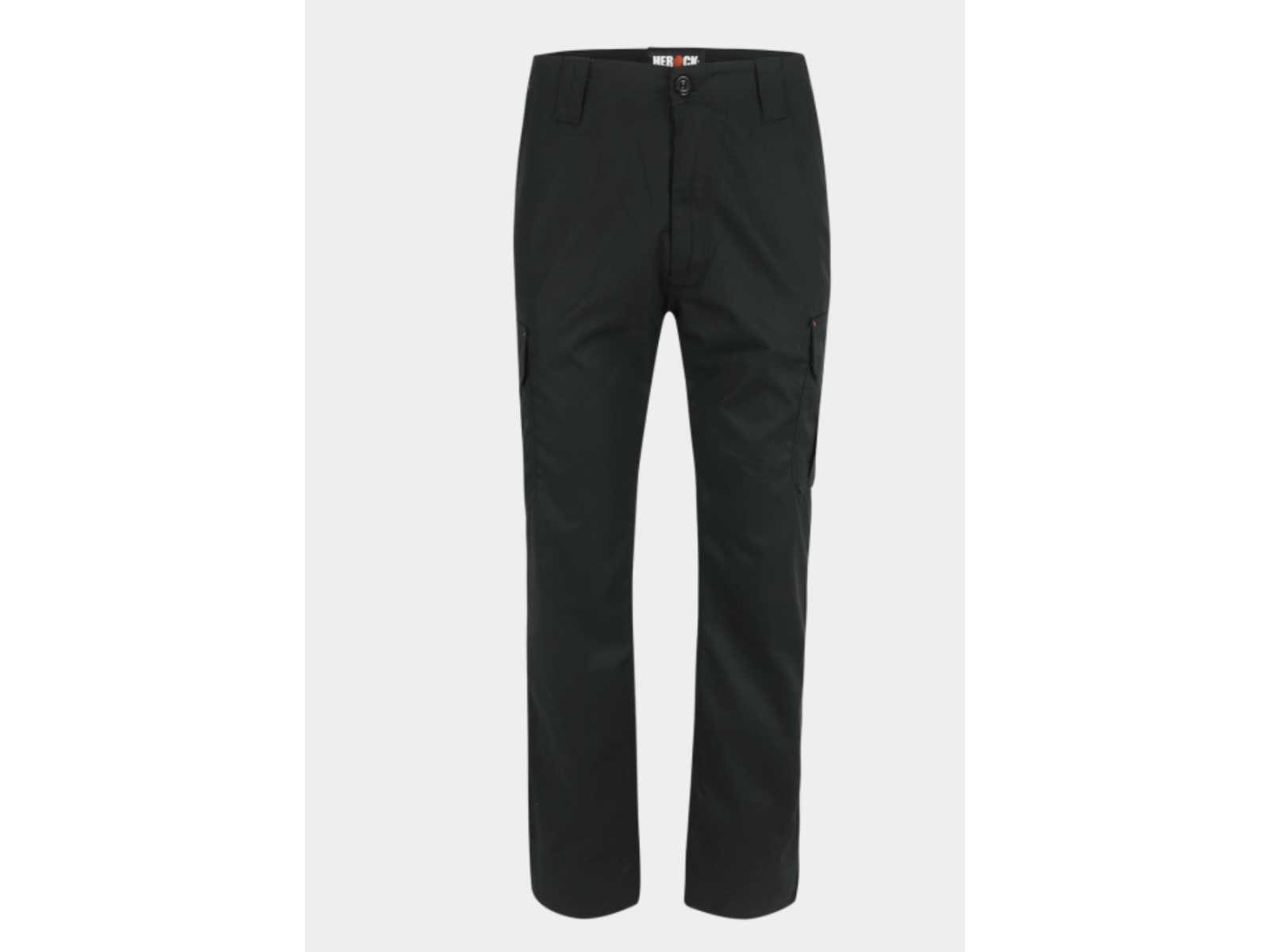 Waterafstotende werkbroek met meerdere zakken; verstelbare taille; duimstokzak; achterzakken; dijbeenzakken Merk: Herock Model: Thor Troussers Maat: 52 Kleur: Zwart