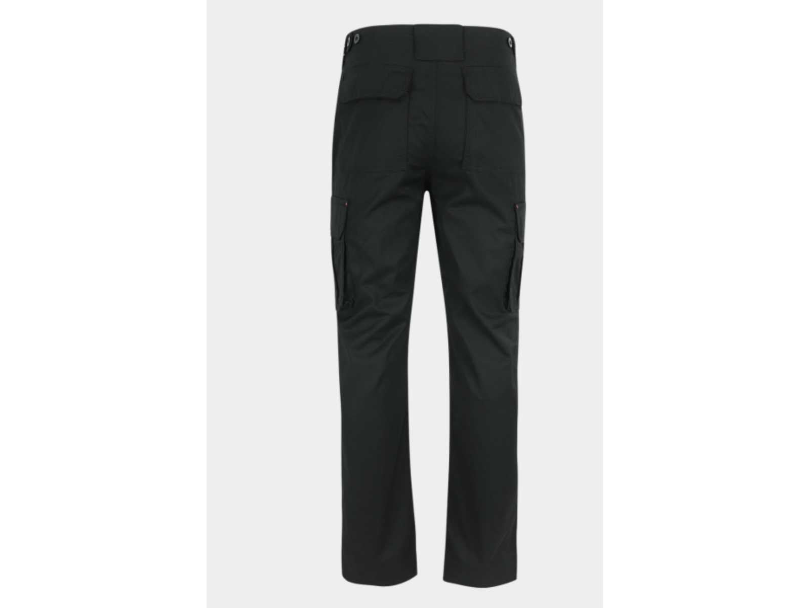 Waterafstotende werkbroek met meerdere zakken; verstelbare taille; duimstokzak; achterzakken; dijbeenzakken Merk: Herock Model: Thor Troussers Maat: 52 Kleur: Zwart