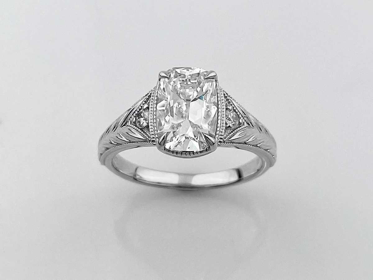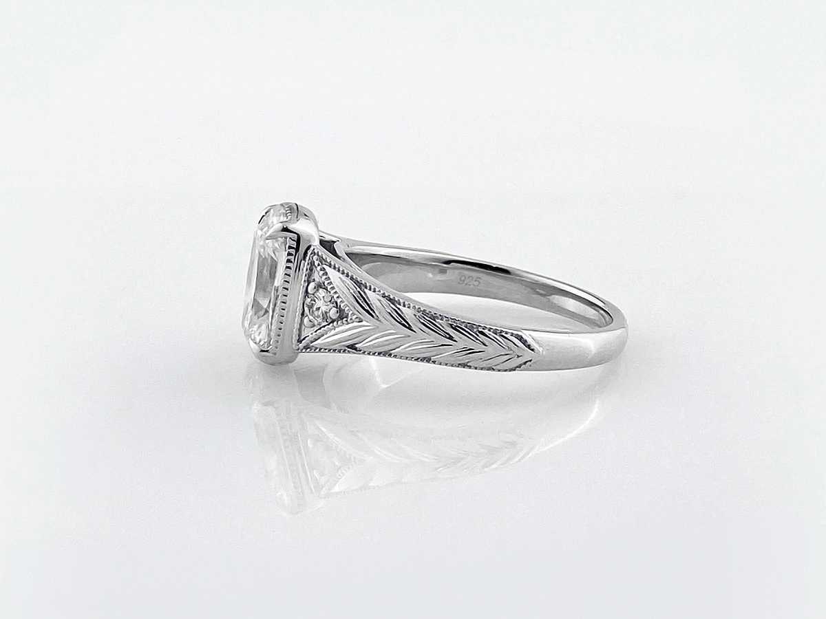 Aantal items-1, Metaal-Zilver Totaal Bruto Gewicht- 3.75, Bezet met: Lab gekweekte diamanten, Aantal diamanten: 3, Totaal karaatgewicht: 2.03, Omringende steen Karaat Gewicht-0.11, Diamanten Zuiverheid: VS, Diamanten Vorm/Slijpvorm: Kussen Briljant geslepen, Diamanten Kleur: EF, Conditie: Nieuw, EU-54, US-7, UK-N1/2 (Diameter-17.2mm), Zilverzuiverheidskeurmerk op het sieraad, Ontwerpcode: SR009372, Verpakking: Juwelendoosje met certificaatkaart, Historische verkoopprijs: €3245. Al onze kavels worden verzonden in Fedex-dozen met hoge prioriteit. U ontvangt een trackingcode kort nadat u de veilingkavels heeft betaald. Het wordt meestal binnen 7-14 dagen verzonden en de levering vindt plaats in 24-48 uur daarna. De kavels zijn verzekerd en vooruitbetaald door de verkoper. Within 14 days Materiaal: Silver Kleur: White Voornaamste diamant: Lab Grown Diamonds Gewicht diamant: 2.14ct Totaal gewicht: 3.75g Kleur diamant: E Zuiverheidsgraad diamant: VS2