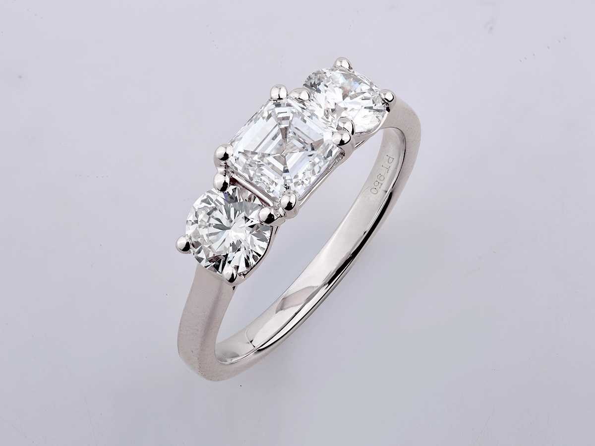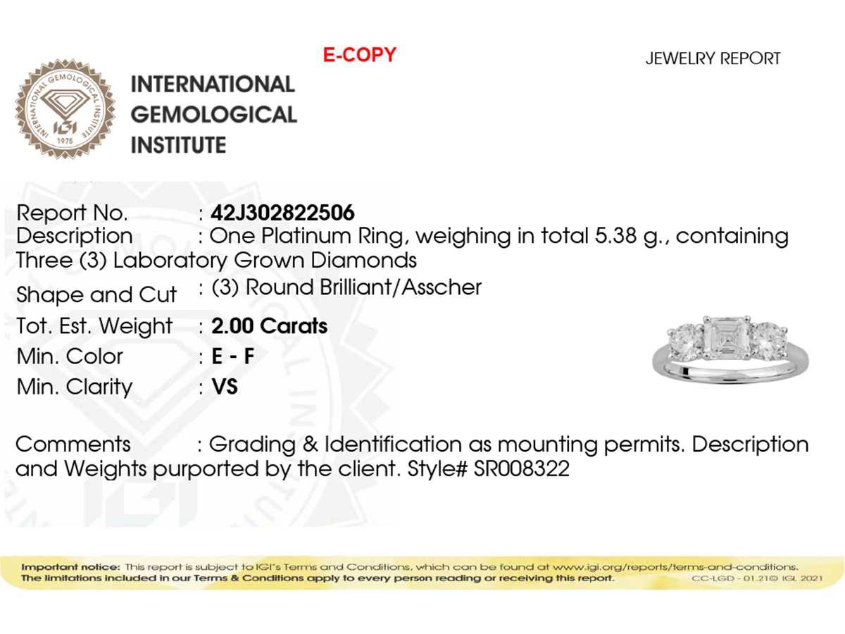 Aantal items-1, Metaal-platina, Totaal brutogewicht - 5.38, Bezet met: Lab gekweekte diamanten, Aantal diamanten: 3, Totaal karaatgewicht: 2, Diamanten Zuiverheid: VS, Diamanten Vorm/slijpvorm: Rond Briljant/ Asscher, Diamanten Kleur: EF, Conditie: Nieuw, EU-54, US-7, UK-N1/2 (Diameter-17,2 mm), Platina zuiverheidskeurmerk op het sieraad, Ontwerpcode: SR008322, Verpakking: Sieradendoosje met IGI-certificaat, Historische verkoopprijs: €2298. Al onze kavels worden verzonden in Fedex-dozen met hoge prioriteit. U ontvangt een trackingcode kort nadat u de veilingkavels heeft betaald. Het wordt meestal binnen 7-14 dagen verzonden en de levering vindt plaats in 24-48 uur daarna. De kavels zijn verzekerd en vooruitbetaald door de verkoper. Within 14 days Materiaal: Platinum Kleur: White Voornaamste diamant: Lab Grown Diamonds Gewicht diamant: 2.0ct Totaal gewicht: 5.38g Kleur diamant: EF Zuiverheidsgraad diamant: VS