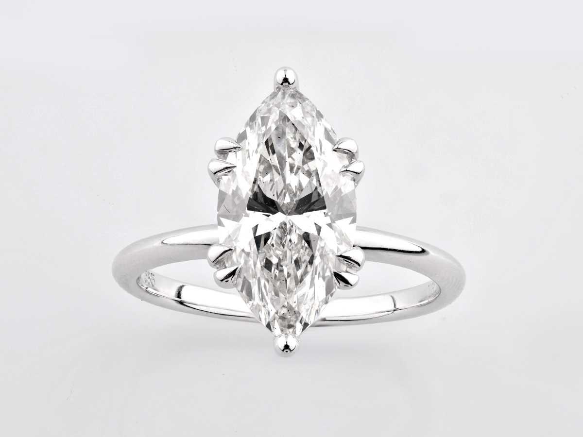 Aantal items-1, Metaal-Goud, Totaal Bruto gewicht- 3.8, Bezet met: Lab gekweekte diamanten, Aantal diamanten: 1, Totaal karaatgewicht: 3.09, Diamanten Zuiverheid: SI, Diamanten Vorm/slijpvorm: Marquise Briljant geslepen, Diamanten Kleur: FG, Conditie: Nieuw, EU-54, US-7, UK-N1/2 (Diameter-17.2mm), Goudzuiverheidskeurmerk op het sieraad, Ontwerpcode: SR007930, Verpakking: Juwelendoosje met certificaatkaart, Historische verkoopprijs: €2873. Goud staat op recordhoogtes ooit. Deze productie zijn nieuwe of ongebruikte sieraden. Het werd echter gemaakt in een lagere goudprijs dan vandaag en we verhogen de prijzen niet - aanbevolen detailhandelsprijzen of geschatte prijzen zijn gebaseerd op HISTORISCHE goudprijzen. Het betekent dat het goud wordt verdisconteerd als u de kosten van vandaag weerspiegelt. Al onze kavels worden verzonden in Fedex-dozen met hoge prioriteit. U ontvangt een trackingcode kort nadat u de veilingkavels heeft betaald. Het wordt meestal binnen 7-14 dagen verzonden en de levering vindt plaats in 24-48 uur daarna. De kavels zijn verzekerd en vooruitbetaald door de verkoper. Within 14 days Materiaal: Gold Kleur: White gold Voornaamste diamant: Lab Grown Diamonds Gewicht diamant: 3.09ct Totaal gewicht: 380g Kleur diamant: FG Zuiverheidsgraad diamant: SI