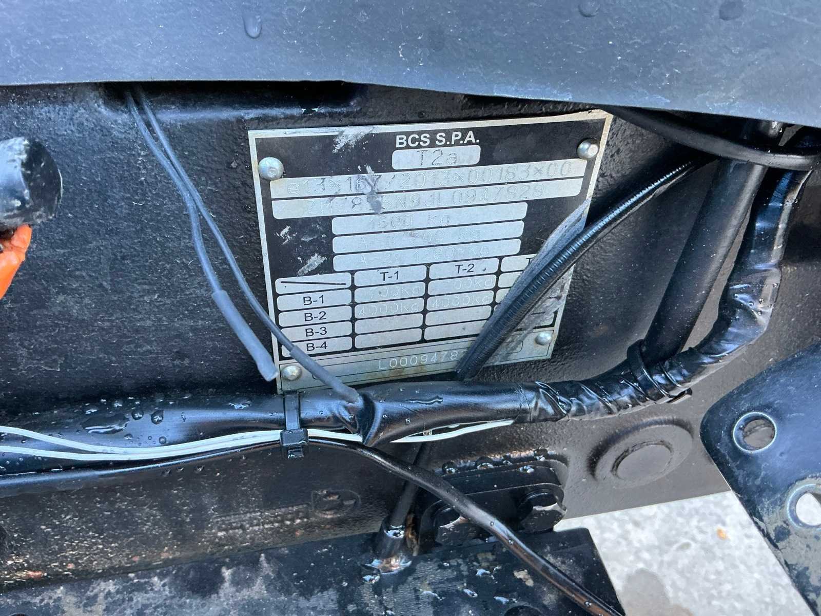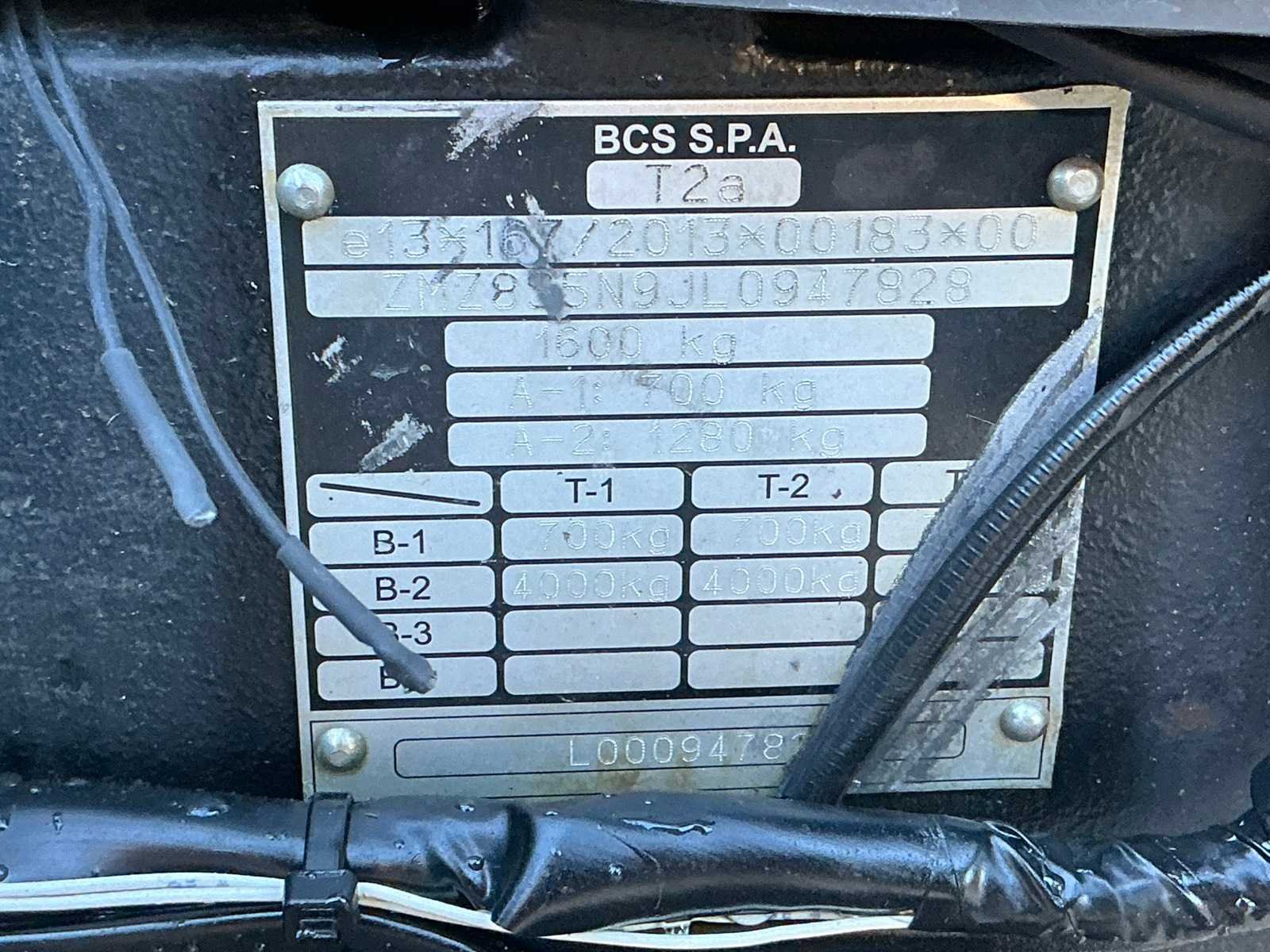 Inschrijvingsbewijs aanwezig, gelijkvormigheidsattest aanwezig Merk: BCS Type: Vivid 400DT Serienummer: ZMZ8S5N9JL0947828 Motorvermogen (kW): 25.3kW Afgelezen urenstand: 2065 Bandenmaat voor: 6.5/80-12 Bandenmaat achter: 250/80-18 Datum eerste toelating: 08/05/2019