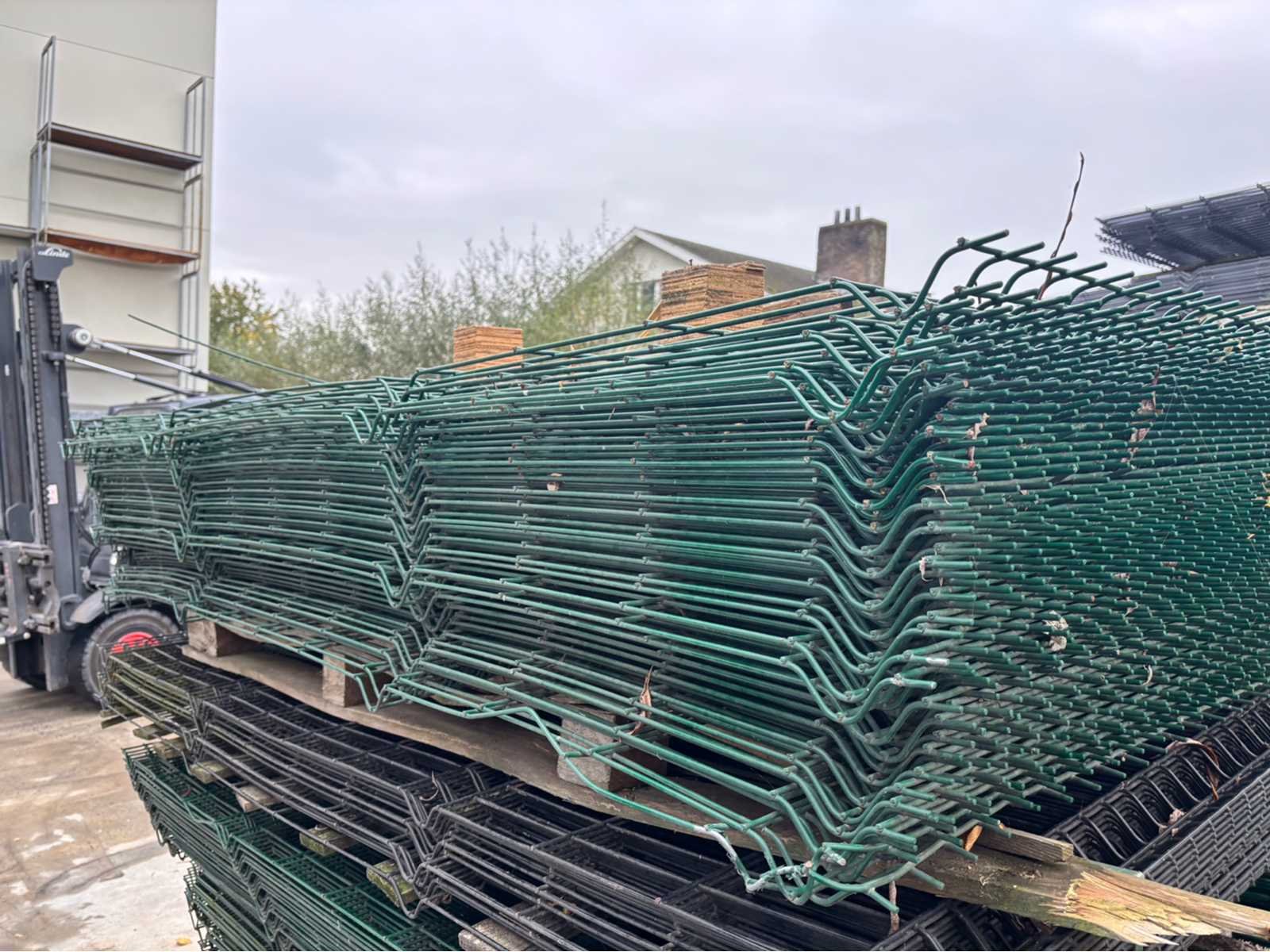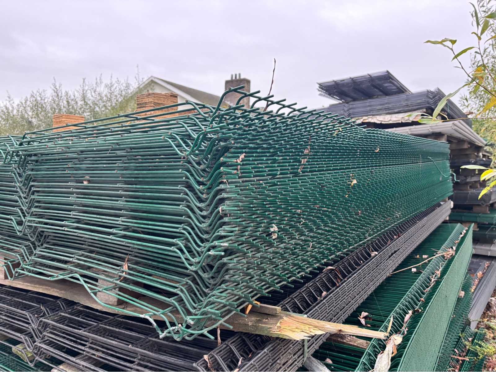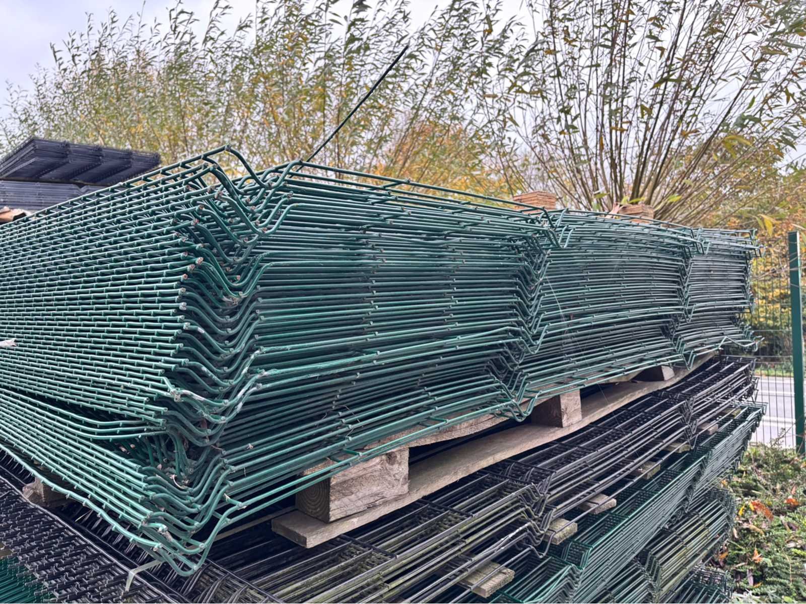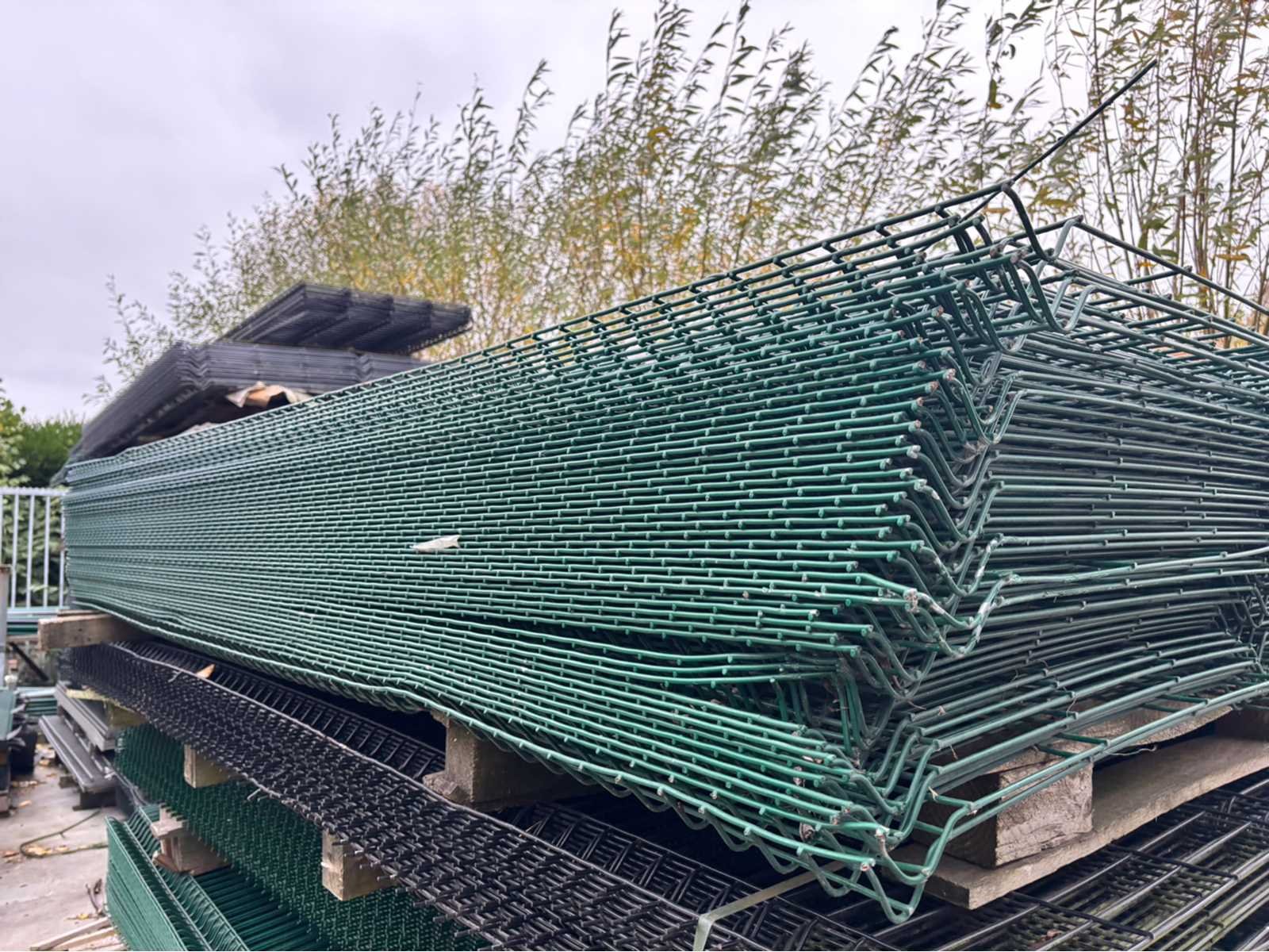 Conditie ongebruikt; lot van 46 panelen met 50 palen lengte 320cm; totale lengte van 138m; 200 bevestigingen; panelen kunnen schade hebben Merk: Europees fabrikaat Model: 3D Product type: 5mm Kleur: Groen RAL6005 Gewicht: 1250kg Breedte: 300cm Hoogte: 240cm Materiaal: Gegalvaniseerd en gecoat