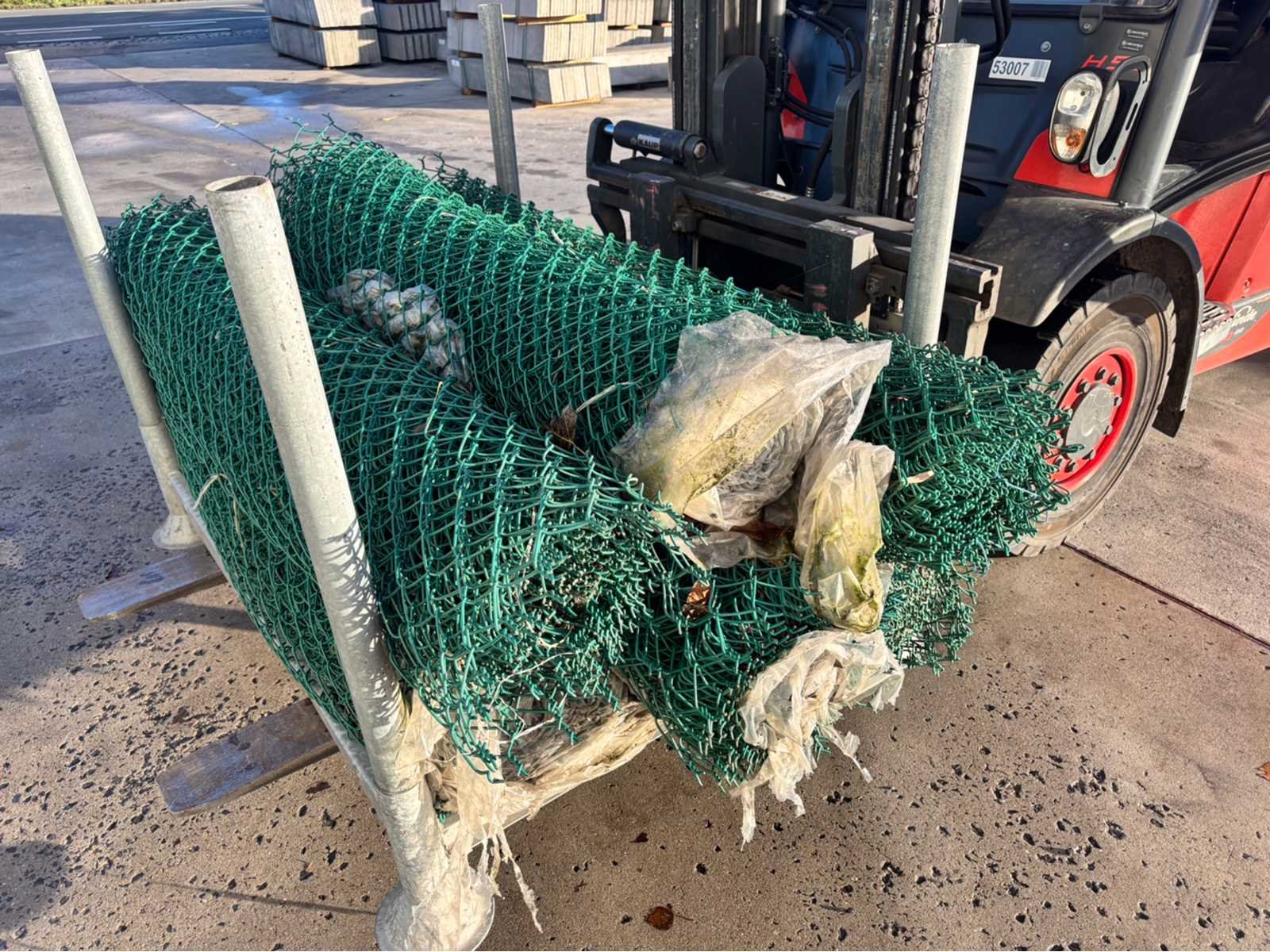 Condite ongebruikt; maaswijdte 50x50mm; draaddikte 3.1mm; b-keuze; circa 5 rollen van circa 25m Merk: Europees fabrikaat Model: Chain link fence Kleur: Groen Gewicht: 300kg Hoogte: 180cm Materiaal: Gegalvaniseerd en geplastificeerd