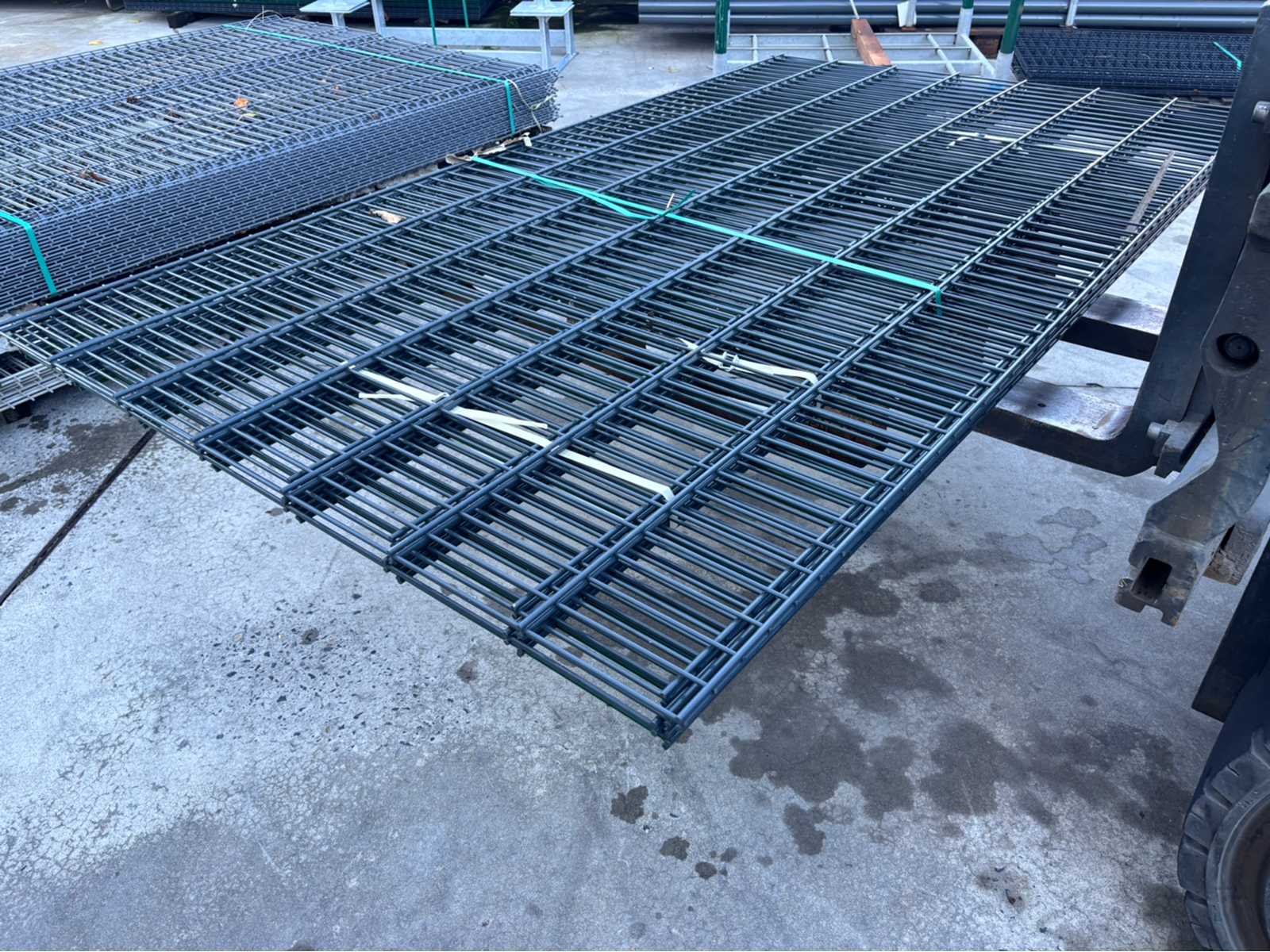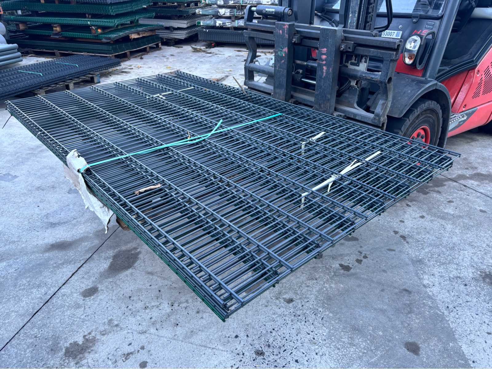 Conditie ongebruikt; lot van 6 panelen; 7 palen lengte 200cm; 20 bevestigingen Merk: Europees fabrikaat Model: 8/6/8mm Product type: Dubbelstaafmat Kleur: RAL7016 Gewicht: 140kg Breedte: 250cm Hoogte: 140cm Materiaal: Gegalvaniseerd en gecoat