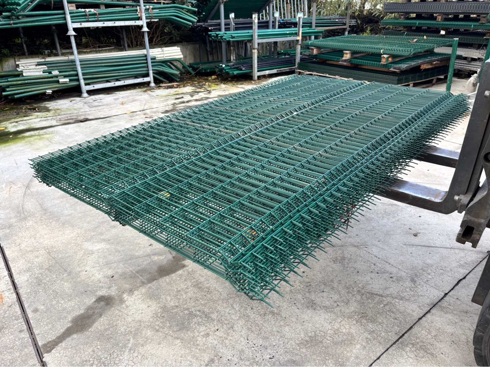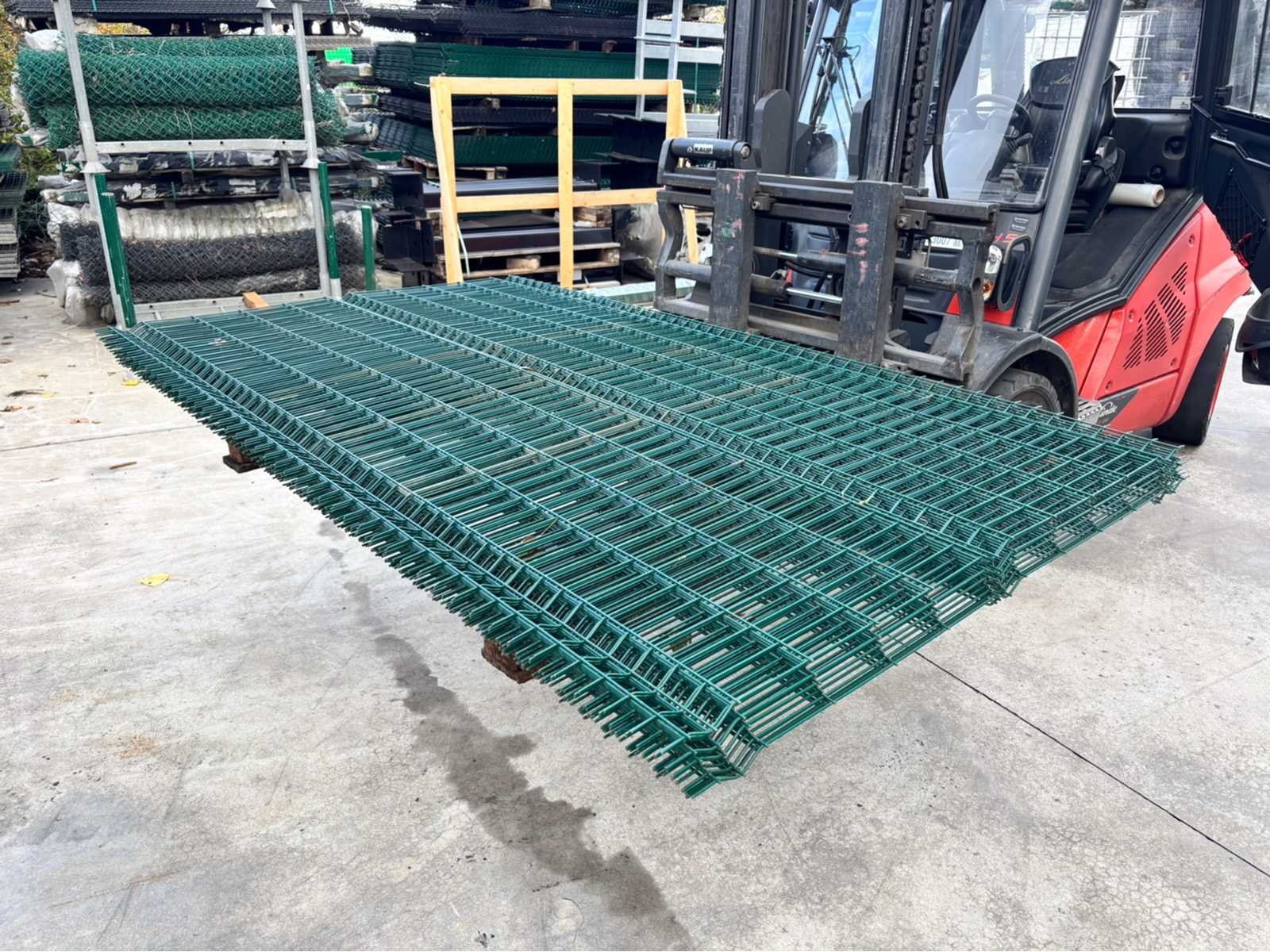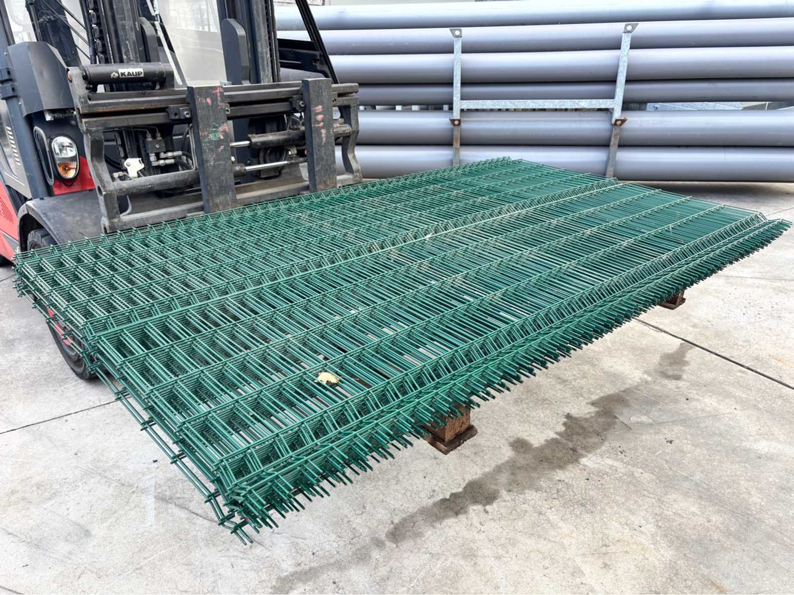 Conditie ongebruikt; draaddikte 4mm; maaswijdte 50x150mm; lot van circa 15 panelen; b-keuze Merk: Europees fabrikaat Model: 3D Product type: Enkele staafpanelen Kleur: Groen RAL6005 Gewicht: 100kg Breedte: 250cm Hoogte: 150cm Materiaal: Elektrolytisch verzinkt en gecoat