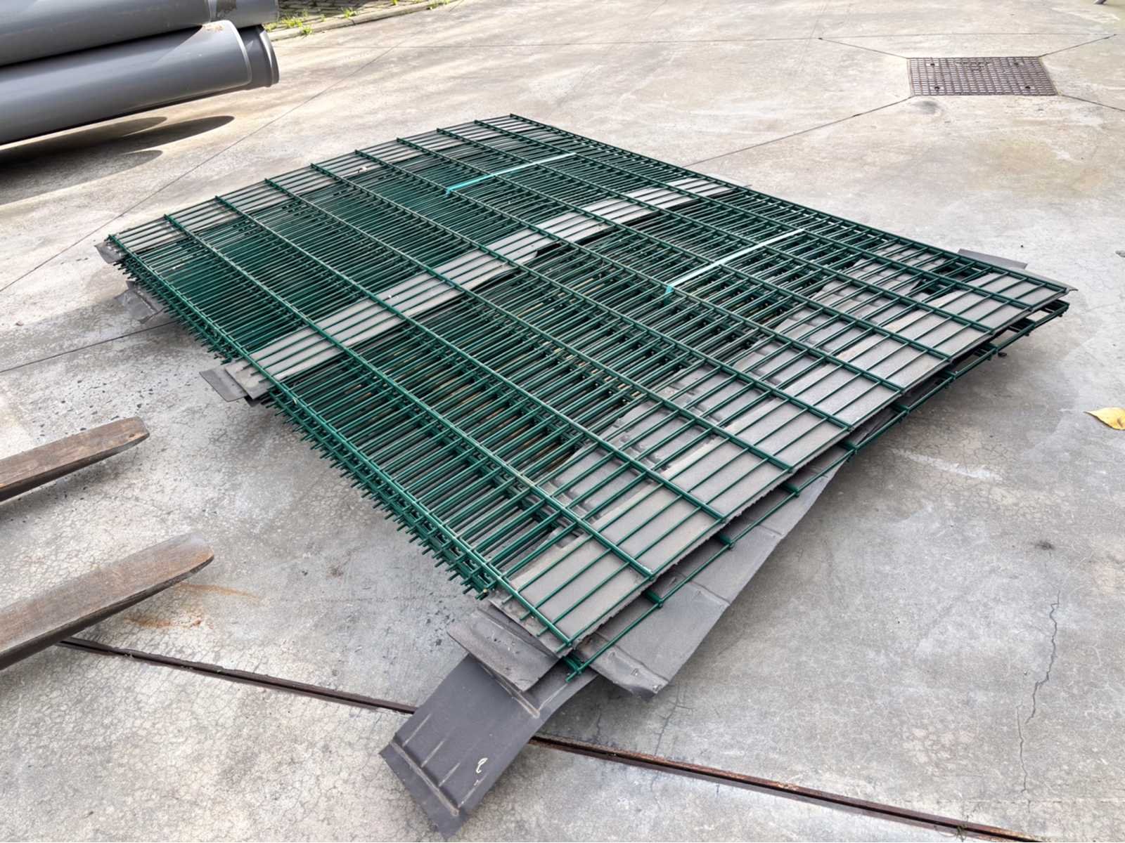 Conditie ongebruikt; lot van 6 panelen met 7 palen en 30 bevestigingen; b-keuze Merk: Europees fabrikaat Model: 8/6/8mm Product type: Dubbel staafmat Kleur: RAL6005 Gewicht: 150kg Breedte: 250cm Hoogte: 180cm Materiaal: Gegalvaniseerd en gecoat