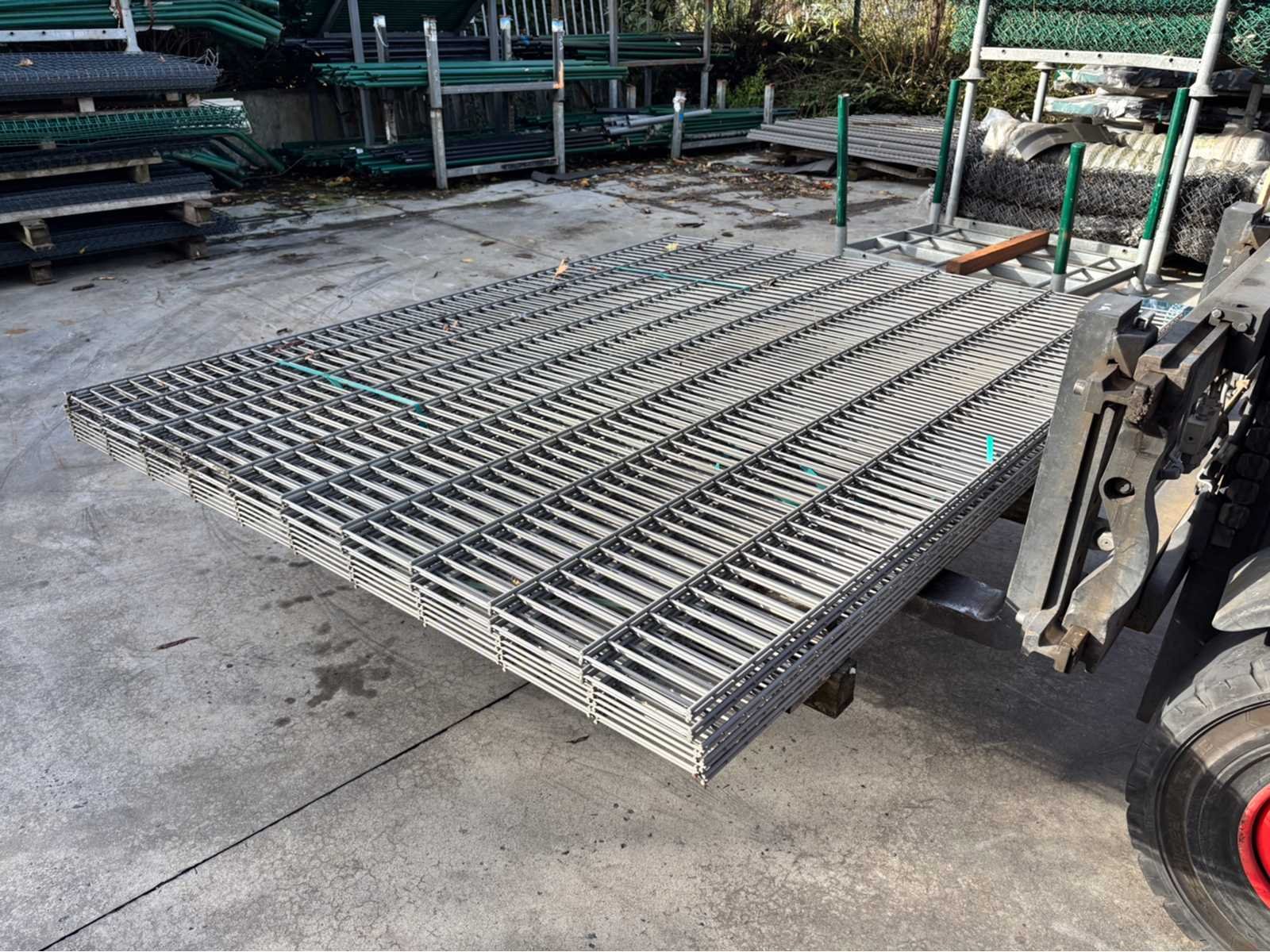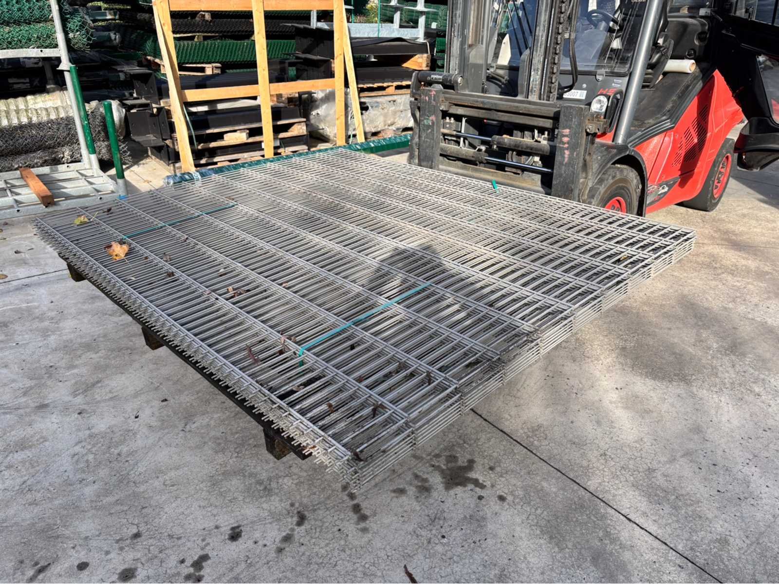 Conditie ongebruikt; 9 panelen; kan lichte schade hebben Merk: Europees fabrikaat Model: 8/6/8mm Product type: Dubbel staafmatten Kleur: Grijs RAL7030 Gewicht: 450kg Breedte: 250cm Hoogte: 200cm Materiaal: Gegalvaniseerd en gecoat