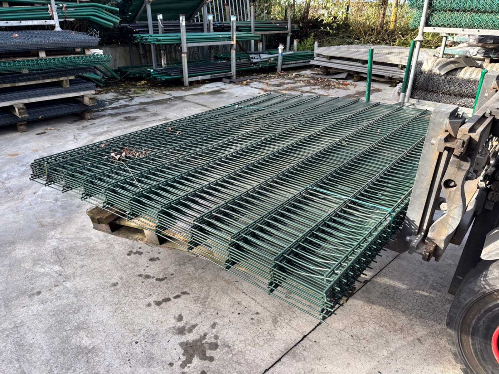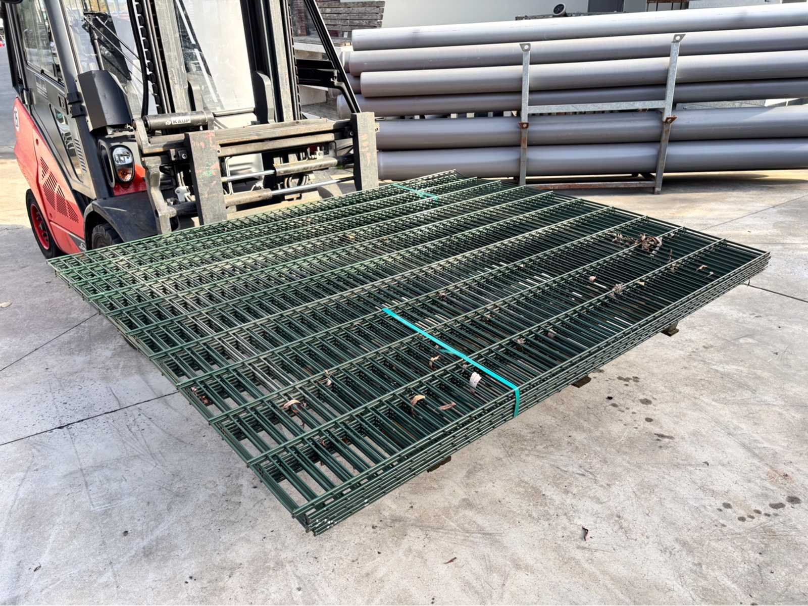 Conditie ongebruikt; 8 panelen; kan schade bevatten Merk: Europees fabrikaat Model: 8/6/8mm Product type: Dubbel staafmatten Kleur: Donker groen RAL6009 Gewicht: 450kg Breedte: 250cm Hoogte: 200cm Materiaal: Gegalvaniseerd en gecoat