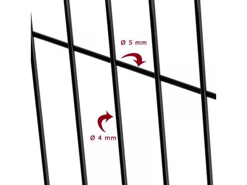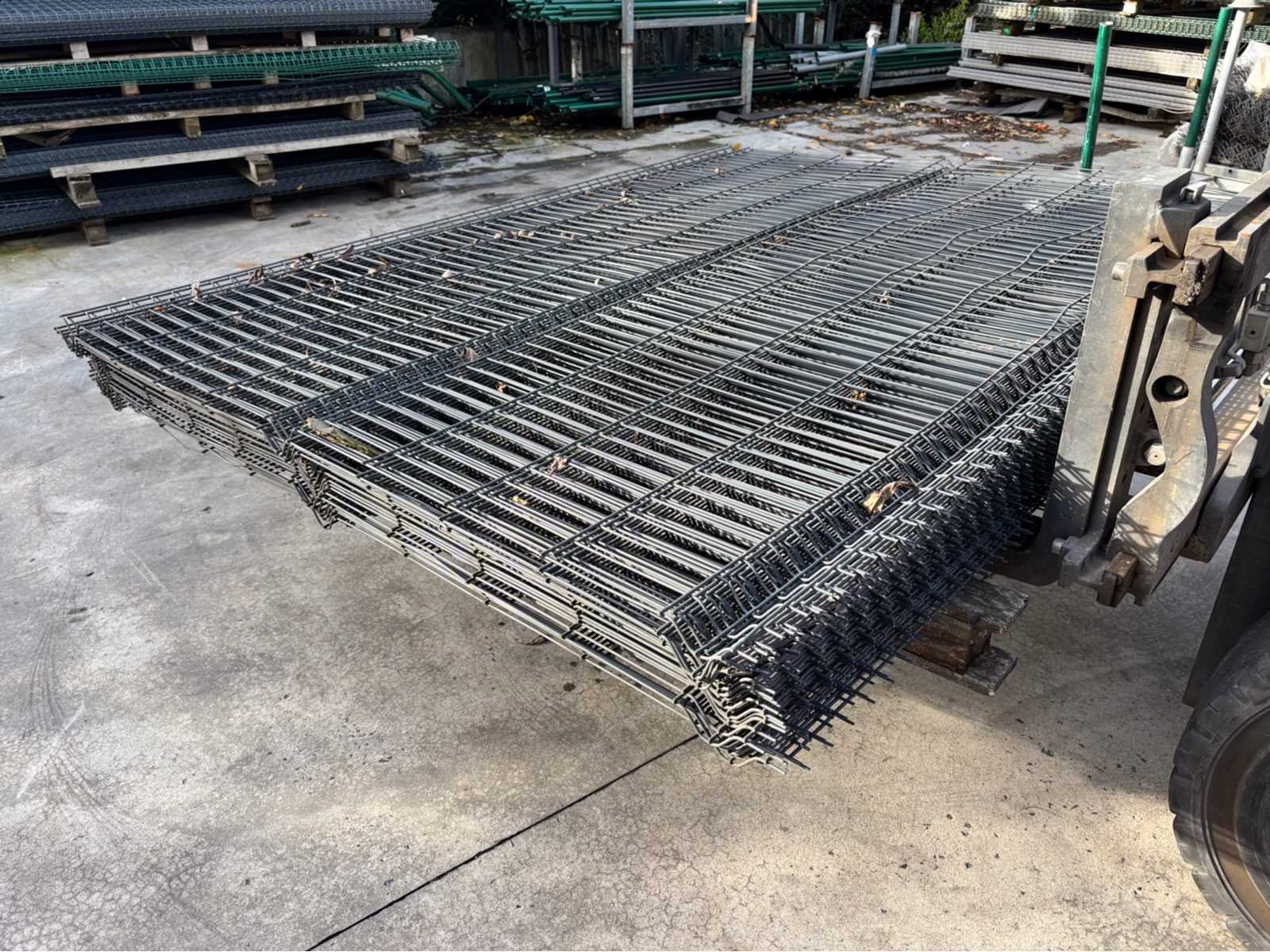 Conditie ongebruikt; lot van 26 panelen en 30 palen lengte 240cm; 100 bevestigingen; panelen in b-keuze Merk: Europees fabrikaat Model: 3D Product type: Enkele staafpanelen Kleur: RAL7016 Gewicht: 400kg Breedte: 250cm Hoogte: 193cm Materiaal: Gegalvaniseerd en gecoat