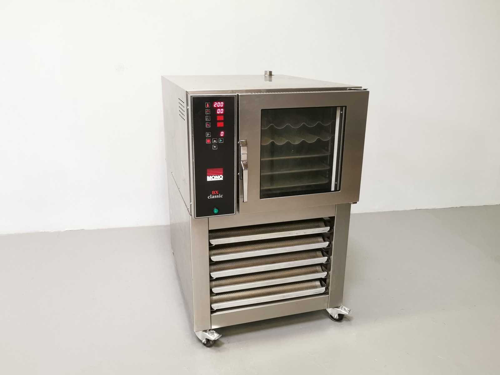 Voorzien van bakplaten, grote capaciteit, 3 FASEN, Op verrijdbare standaard. Merk: Mono Type: BX Classic Aantal niveau's: 5 Aansluiting: 380V Digitale besturing: true Elektrisch: true Rvs: true Totale afmeting L: 78cm Totale afmeting Breedte: 107cm Totale afmeting Hoogte: 123cm