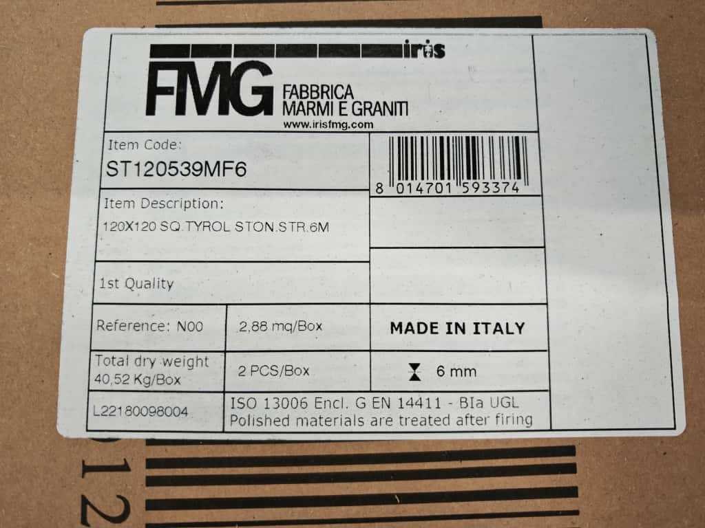 Merk: Iris Kleur: Tyrol Stone Afwerking: Mat Gestructureerd Lengte: 1200mm Breedte: 1200mm Dikte: 6mm Materiaal: Keramiek Type: Vloertegel Aantal m² per verpakking: 2.88m² Aantal pakken: 24 Totaal oppervlakte: 70.56m² Totaal gewicht: 1450kg