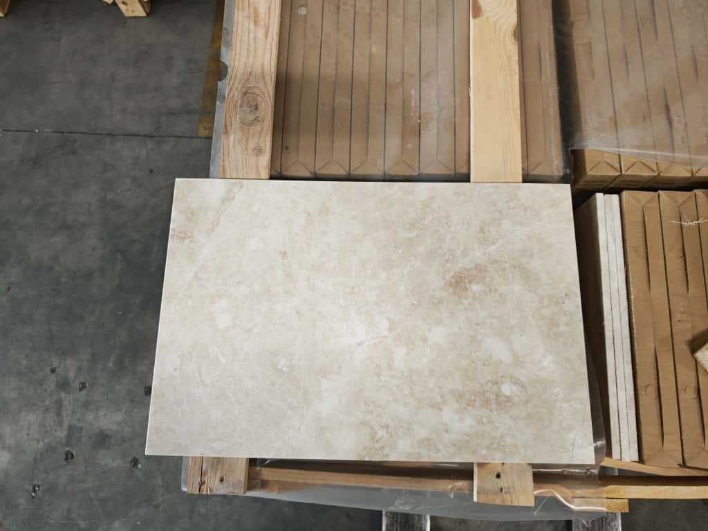 Merk: Natuursteen Kleur: Creme Afwerking: Honed Lengte: 406mm Breedte: 610mm Dikte: 12mm Materiaal: Marmer Type: Vloertegel Model: Royal Cream Honed Micro Bev Totaal oppervlakte: 71,32m² Totaal gewicht: 2200kg
