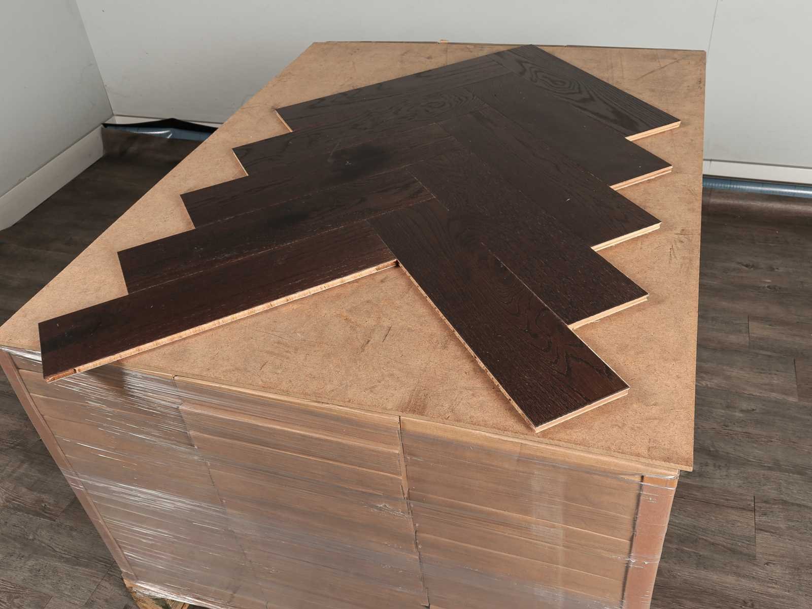 Mes en groef systeem, geschikt voor alle soorten vloer en koelverwarmingen, kwaliteits parketvloer, de planken bevatten korte en lange delen, vloer is van hoogwaardig Europees eiken hout, dikte 14 mm, 300 pakken a 0,387 m2 Merk: Select floor Product type: Parket Oppervlakte: 116m² Geschikt voor vloerverwarming: Ja V-groef: Ja Afwerking: Geolied, geborsteld, met v-groef Aantal m² per verpakking: 0.387m² Kleur: Dark smoked 054 Gewicht: 1100kg Lengte: 508mm Breedte: 127mm Materiaal: Eiken multiplank