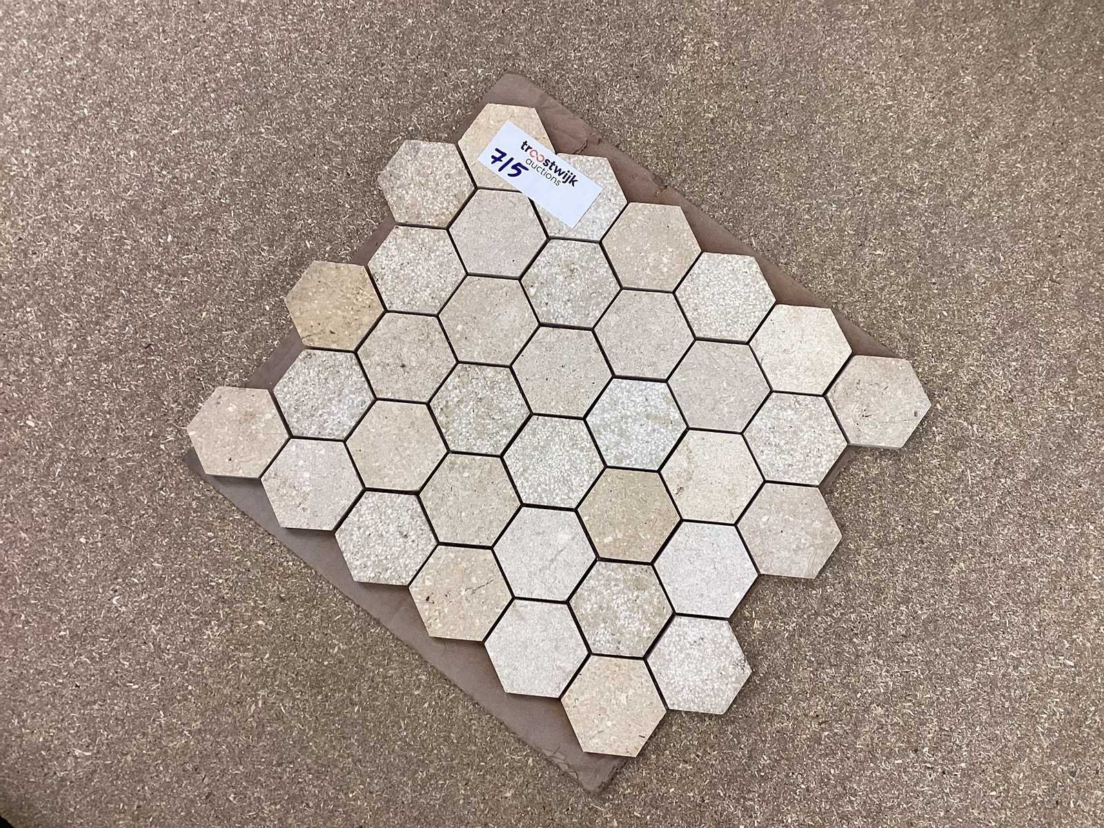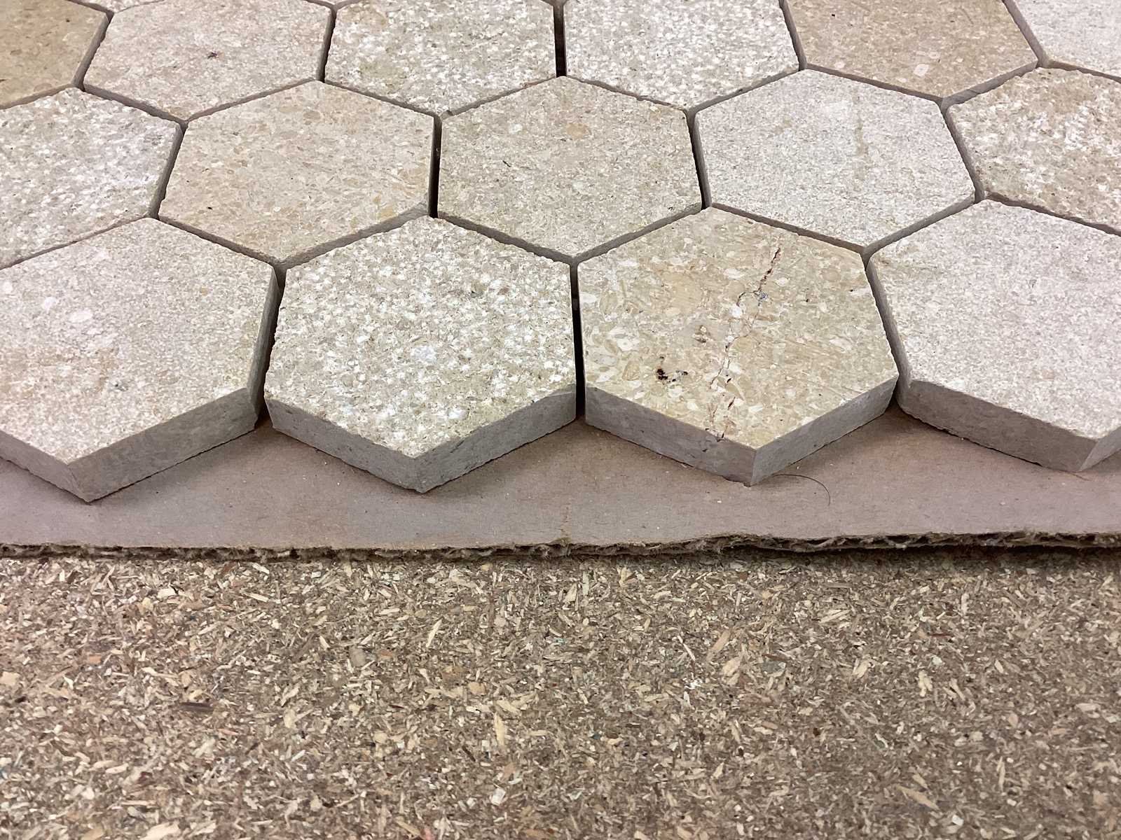 Natuursteen limestone beige mix hexagon 5x5 cm mozaïektegel 30x30 cm 19 stuks