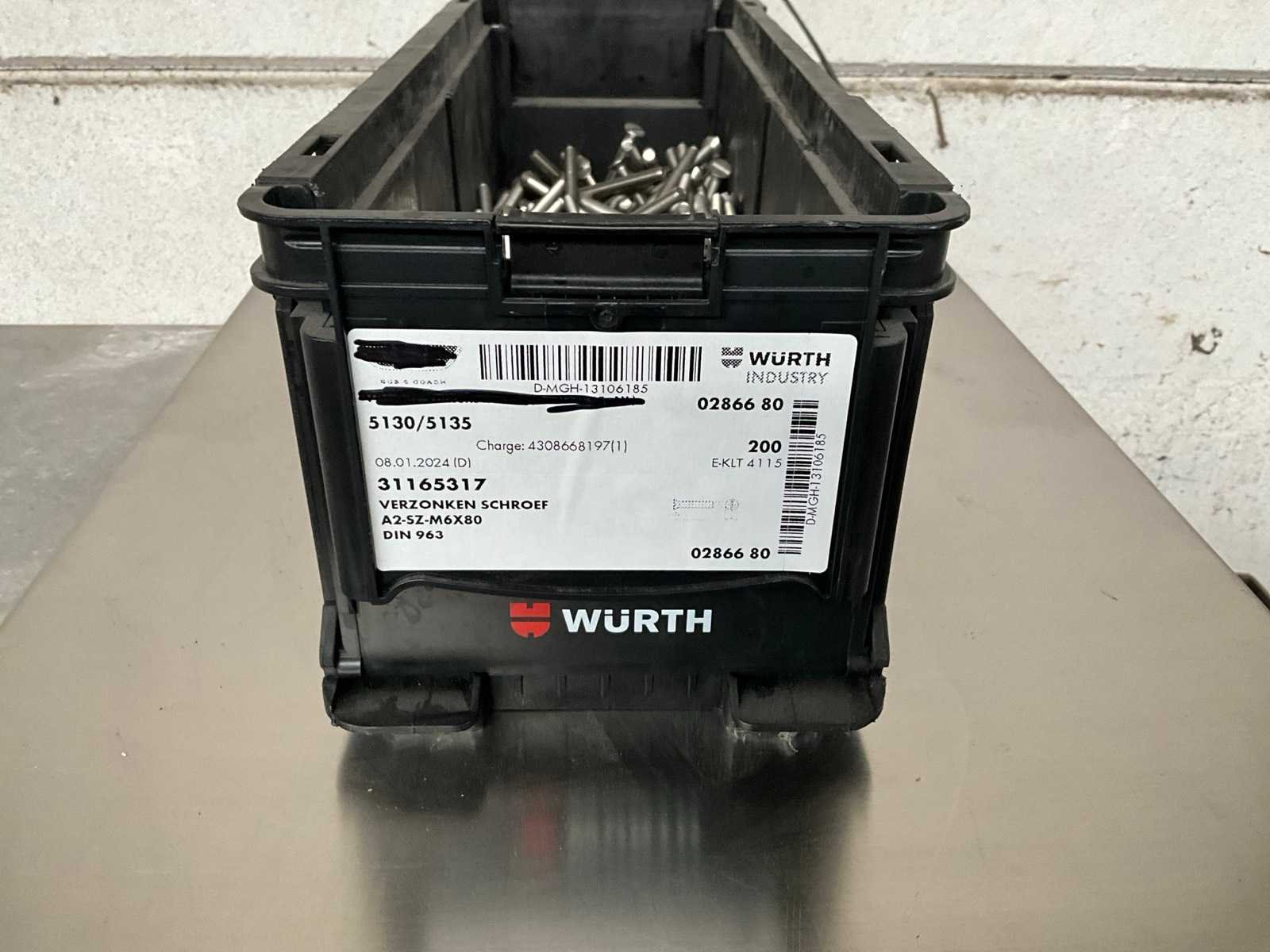 Würth 4.88 kg verzonken schroef m6 x 80 in stapelbare bak