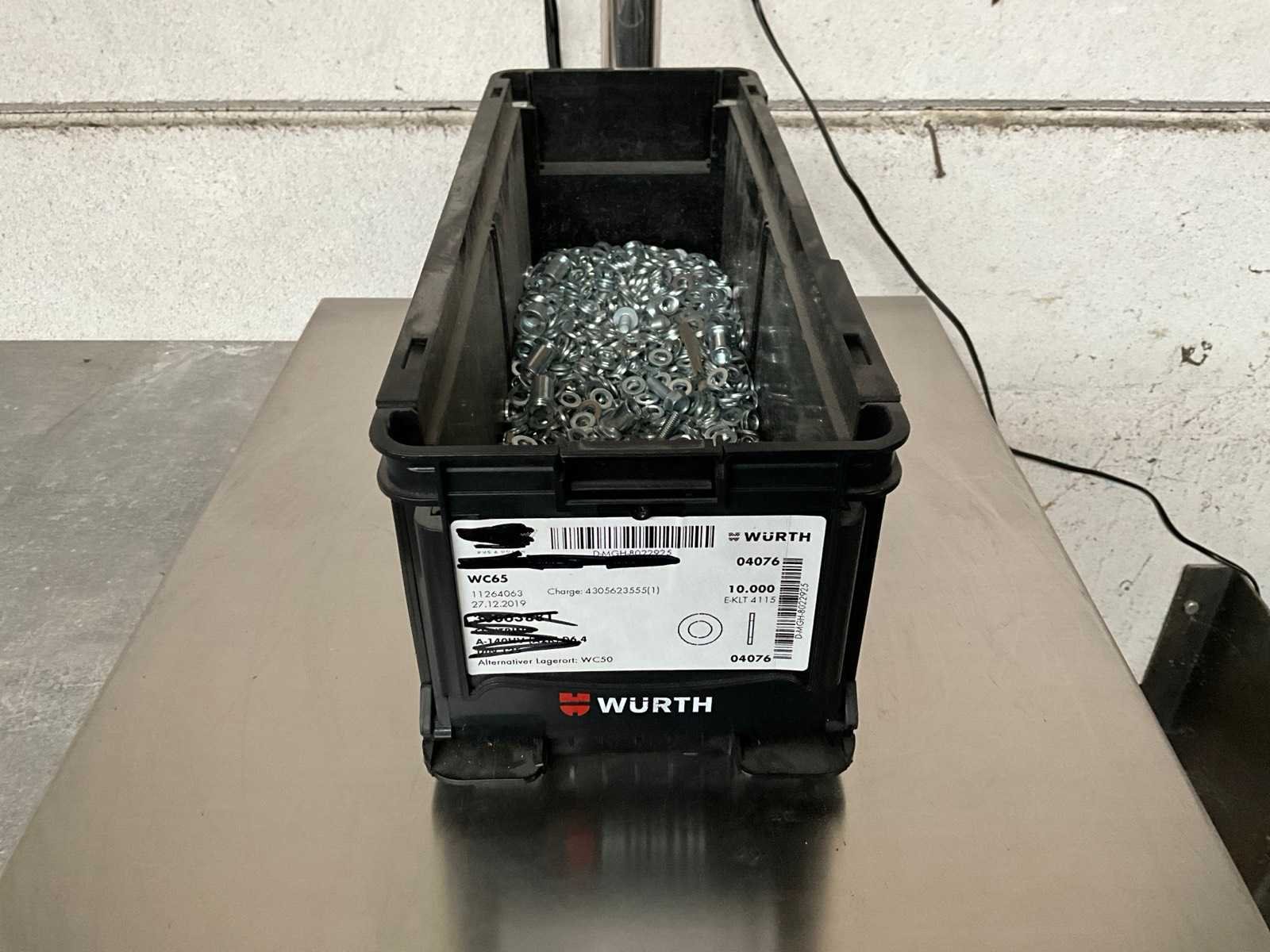 Würth 5.23 kg mix bak met o.a. ringen, bouten en blindklinkmoeren in stapelbare bak