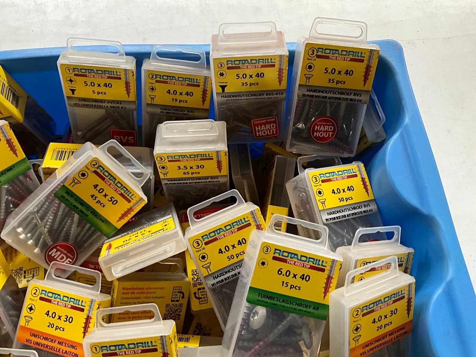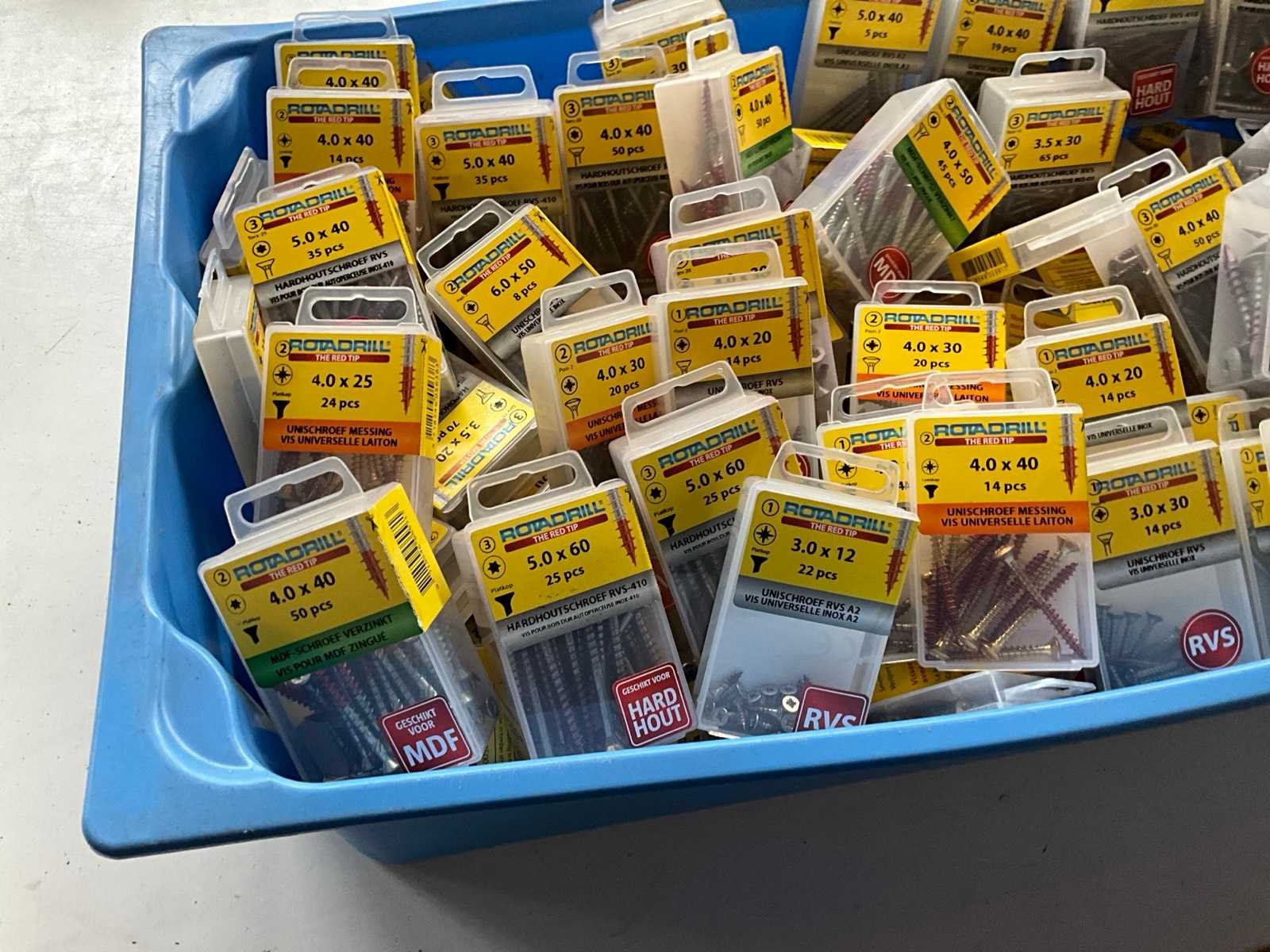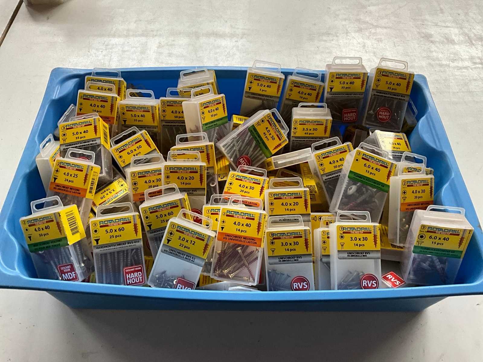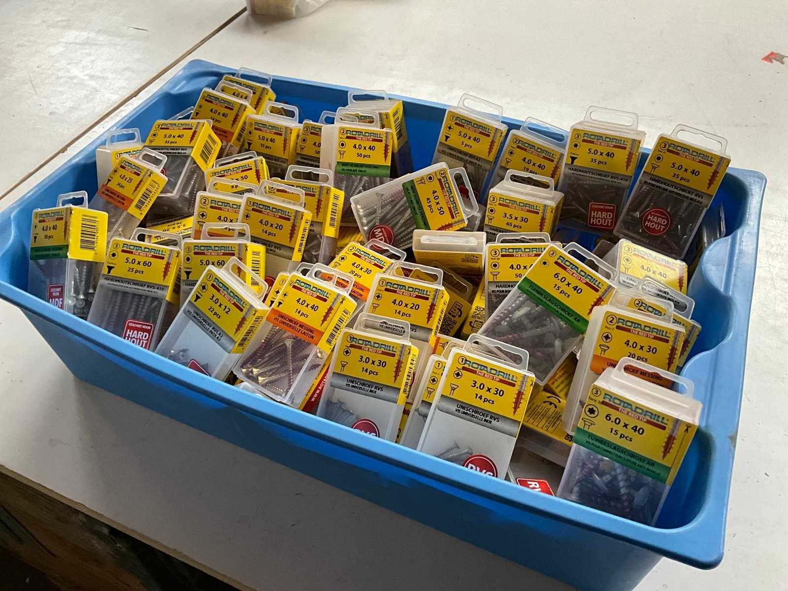 Rotadrill diverse schroeven rvs, messing en verzinkt (100x)
