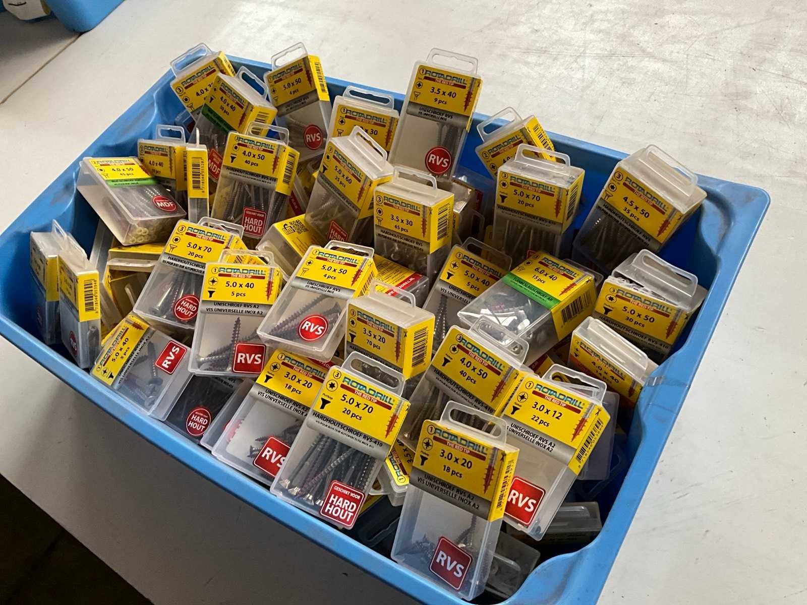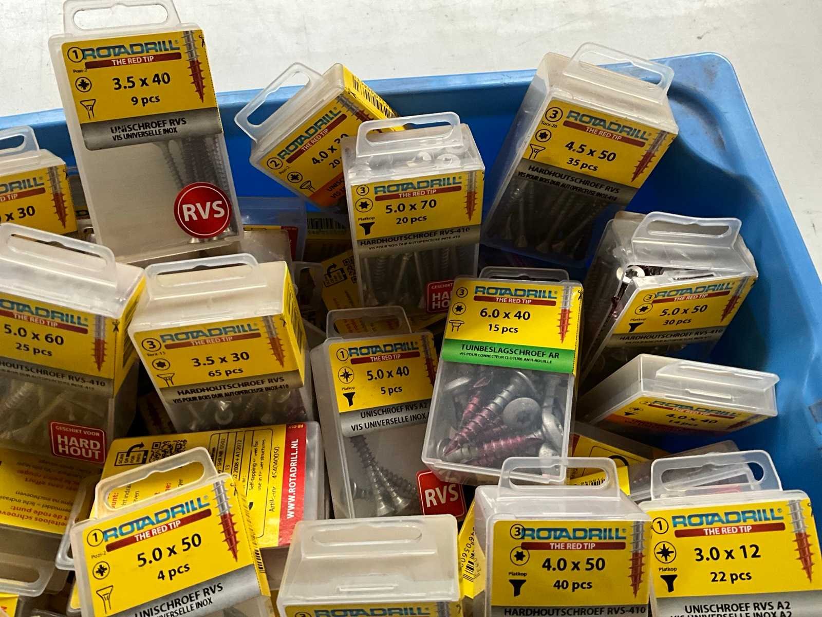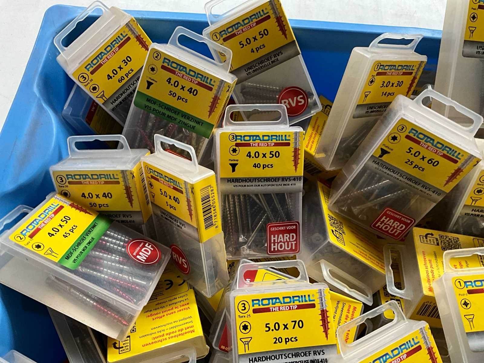Rotadrill diverse schroeven rvs, messing en verzinkt (100x)