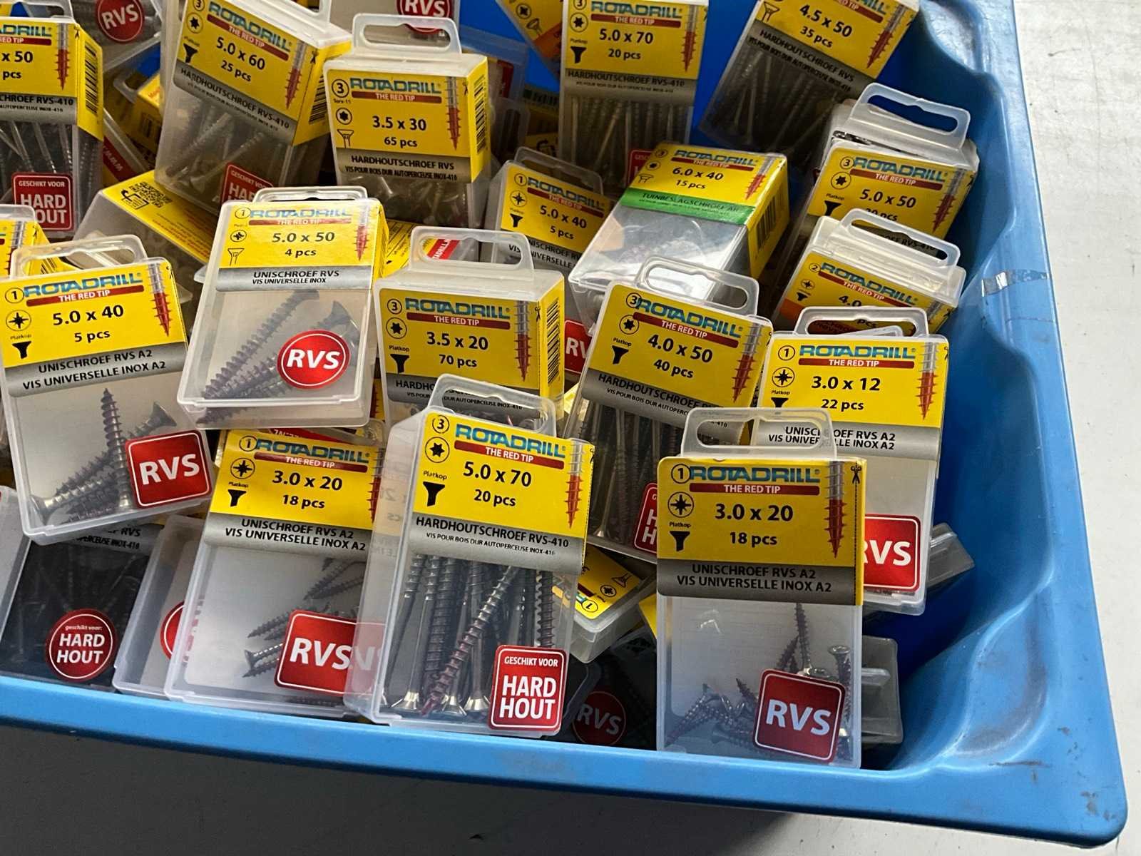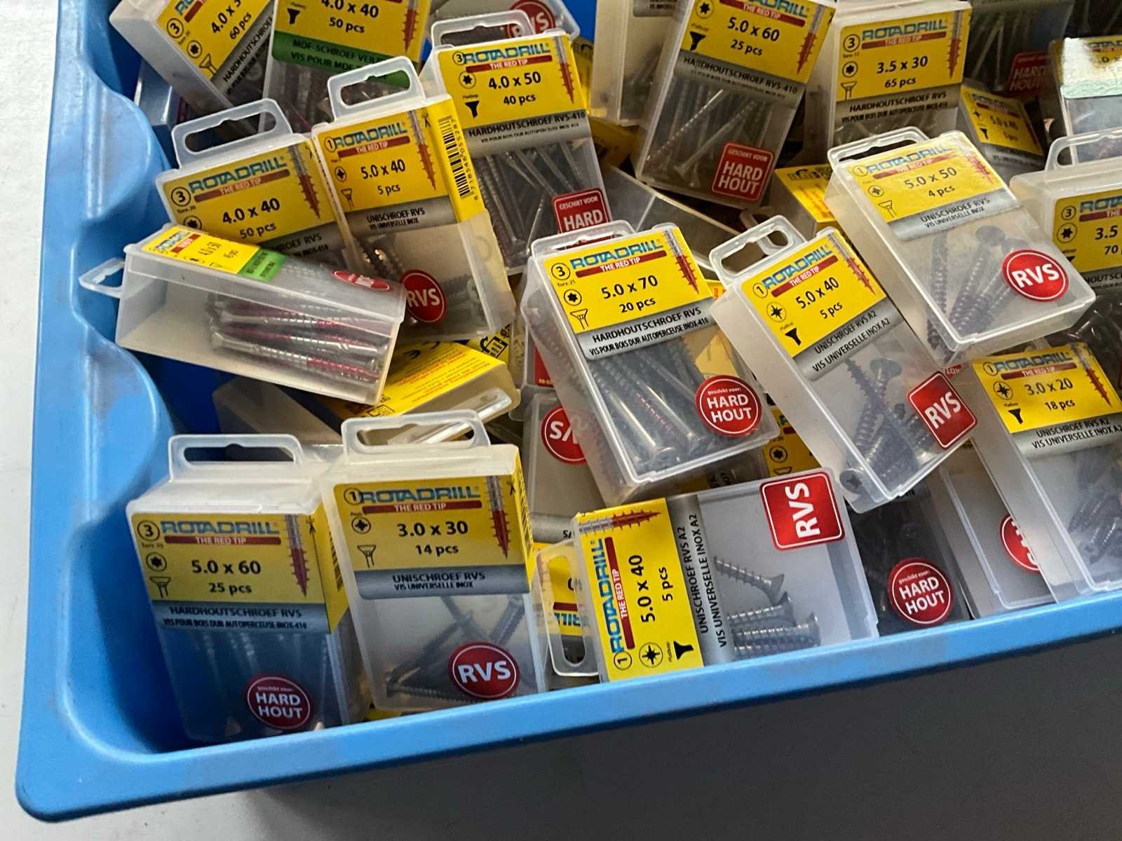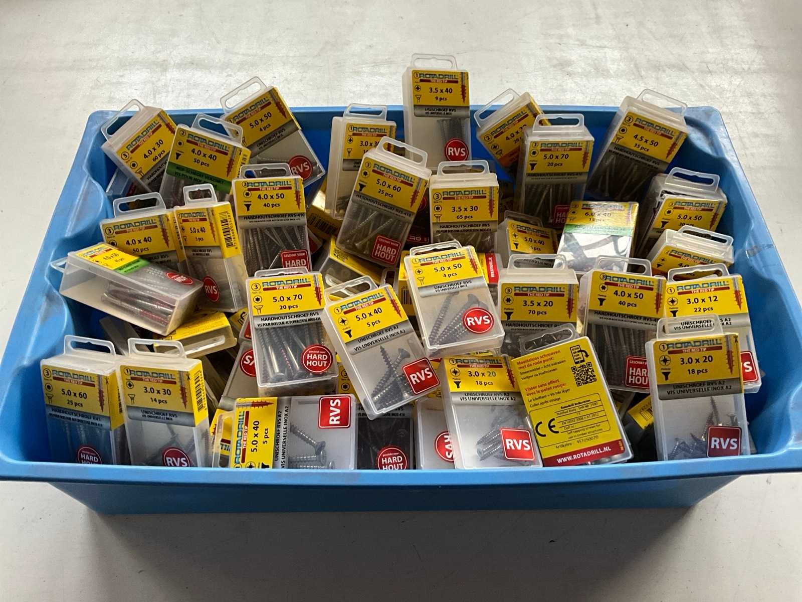Rotadrill diverse schroeven rvs, messing en verzinkt (100x)
