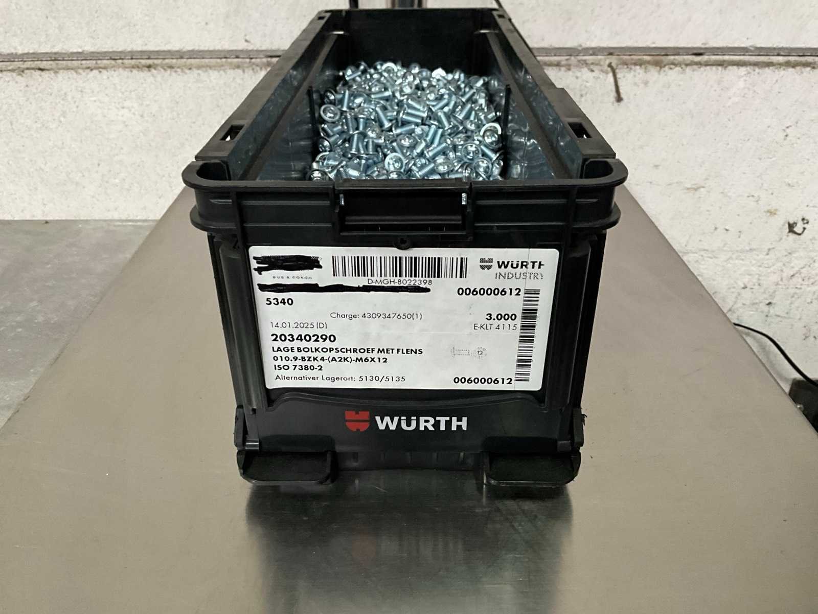 Würth 10.52 kg lage bolkopschroef met flens m6 x 12 in stapelbare bak