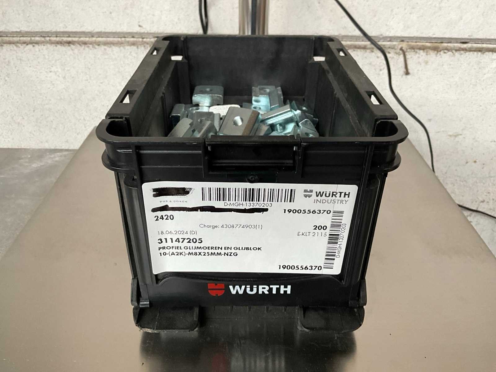 Würth 8.93 kg profiel glijmoeren en glijblok in stapelbare bak