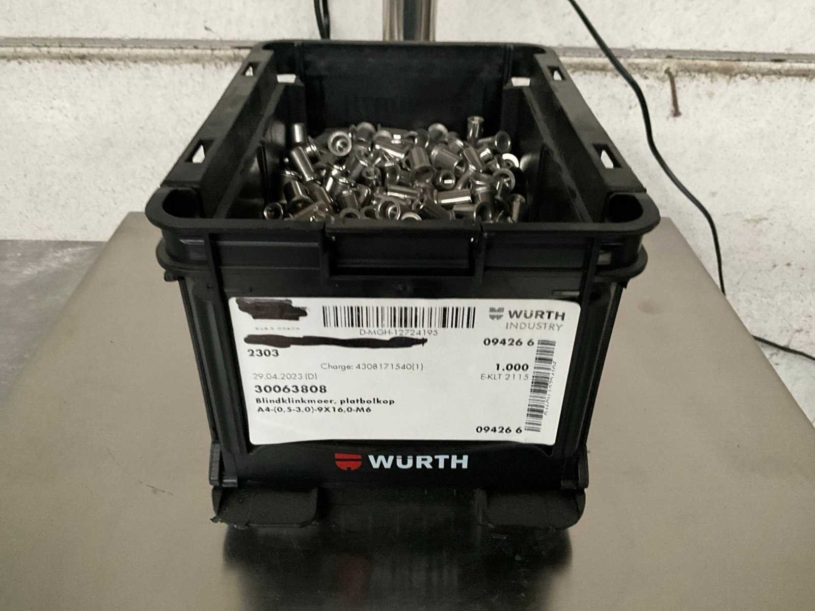 Würth 4.35 kg blindklinkmoer platbolkop in stapelbare bak