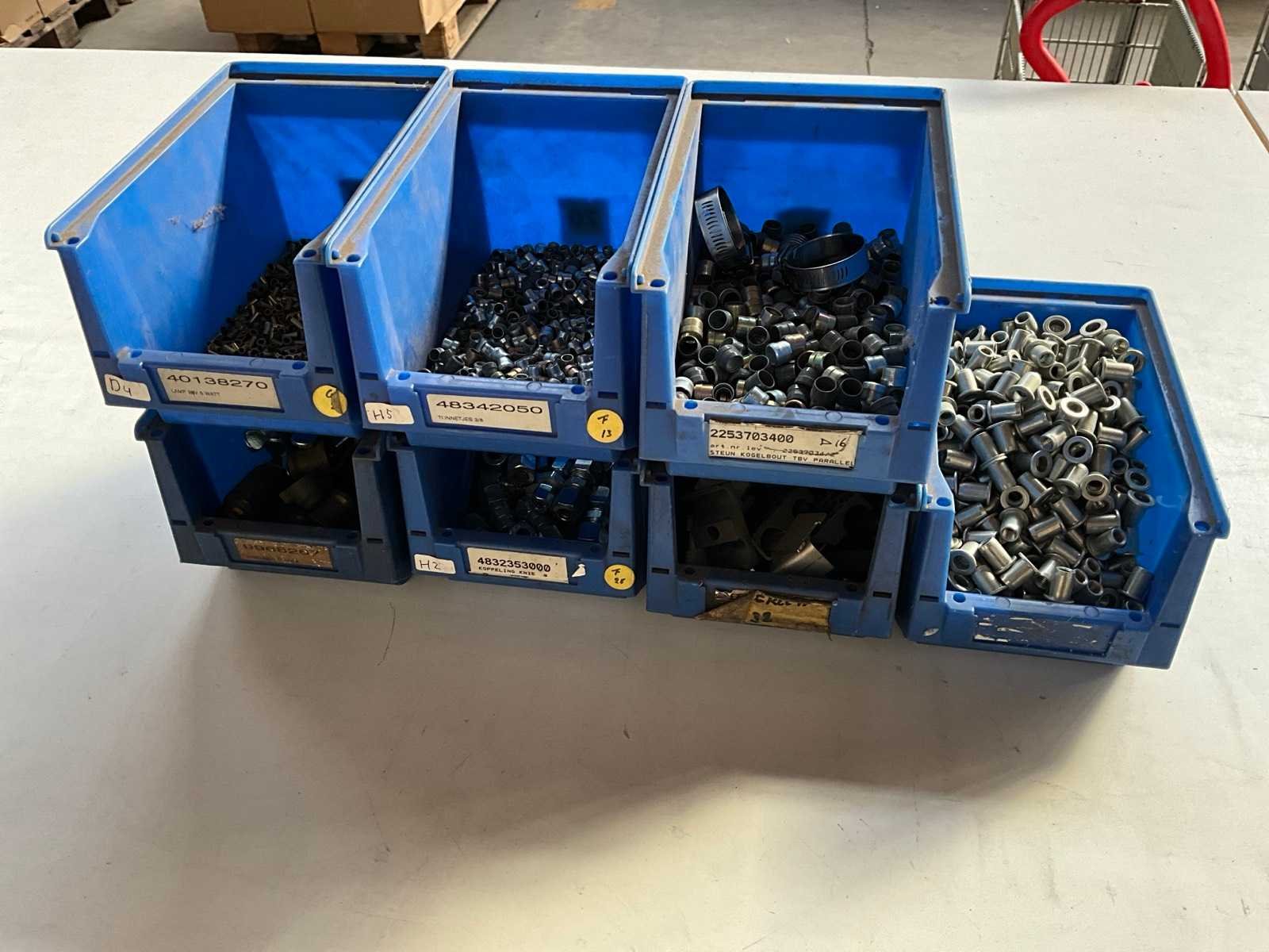 16,42 kg diverse bevestigingsmaterialen in stapelbare bak