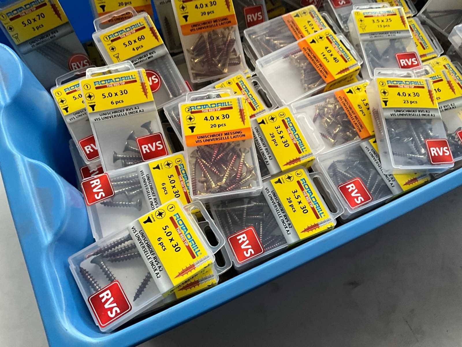 Rotadrill diverse schroeven rvs, messing en verzinkt (100x)