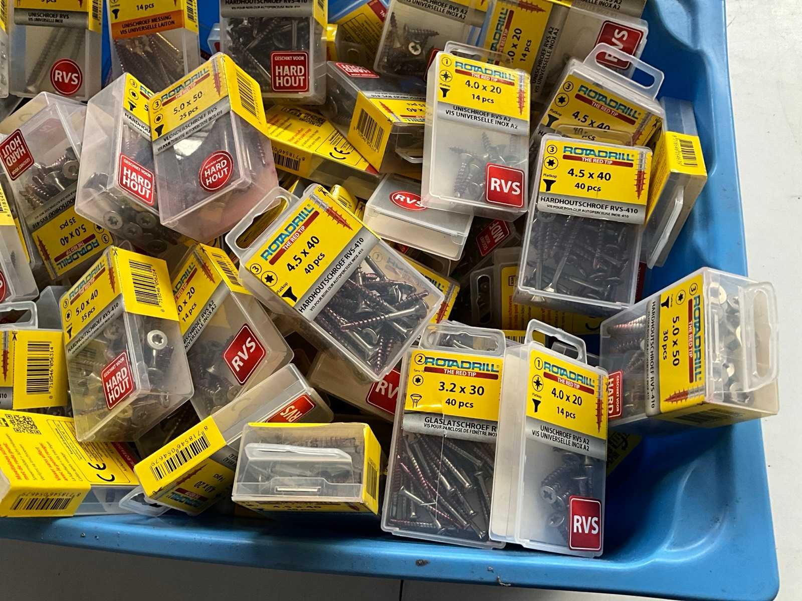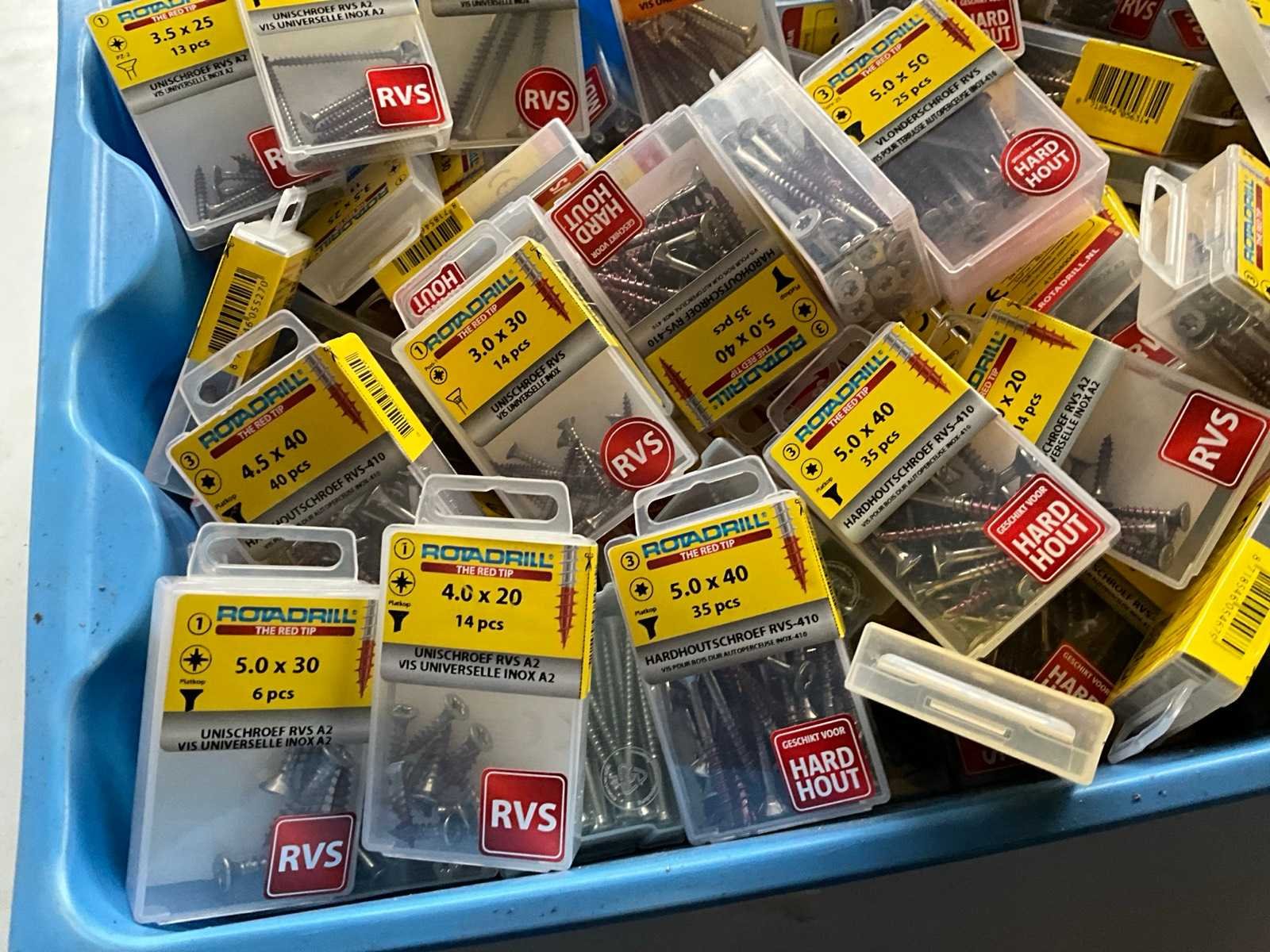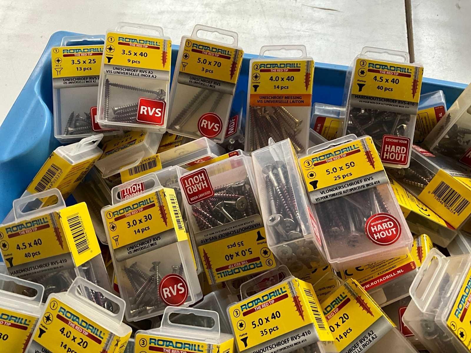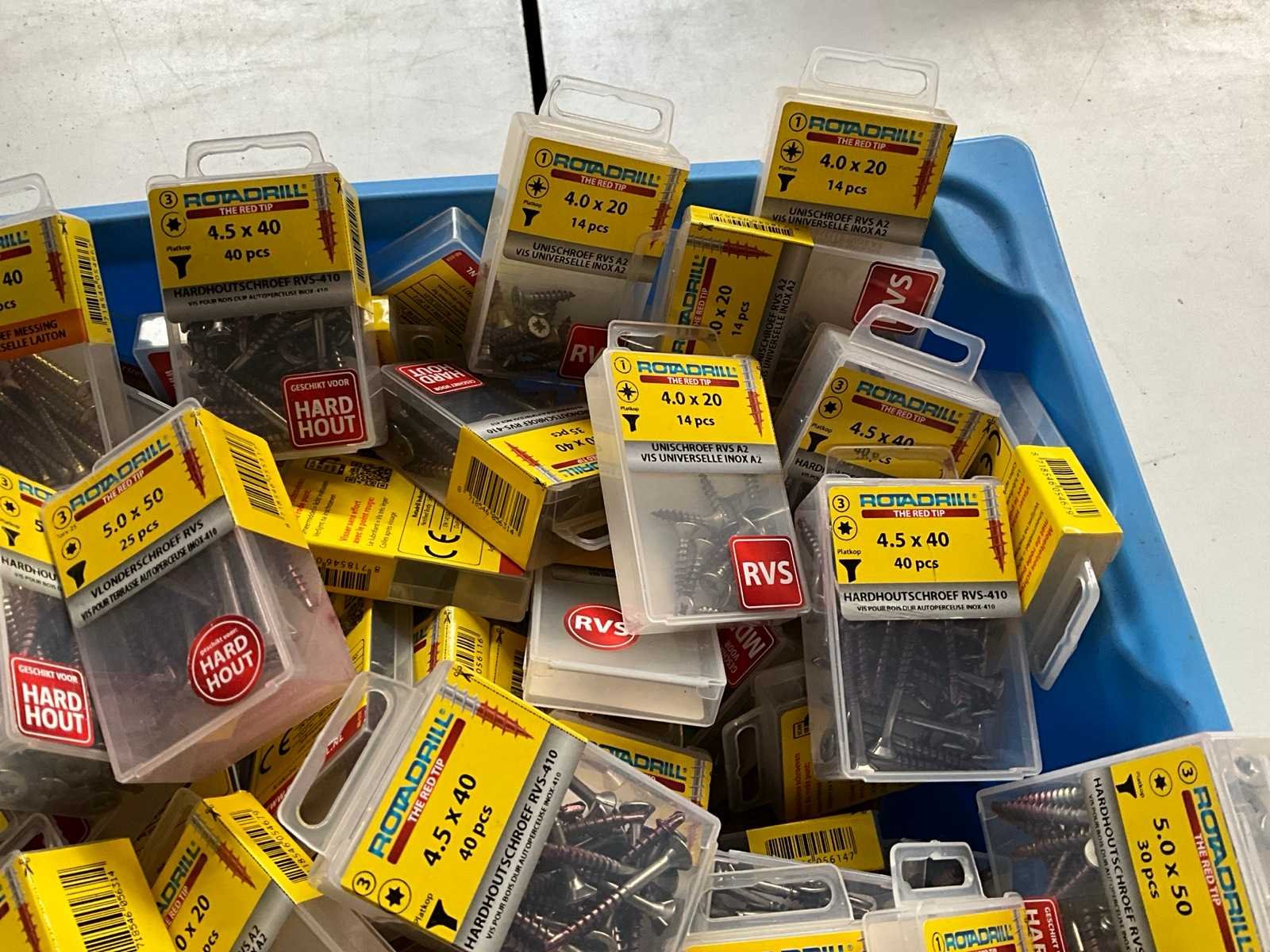Rotadrill diverse schroeven rvs, messing en verzinkt (100x)