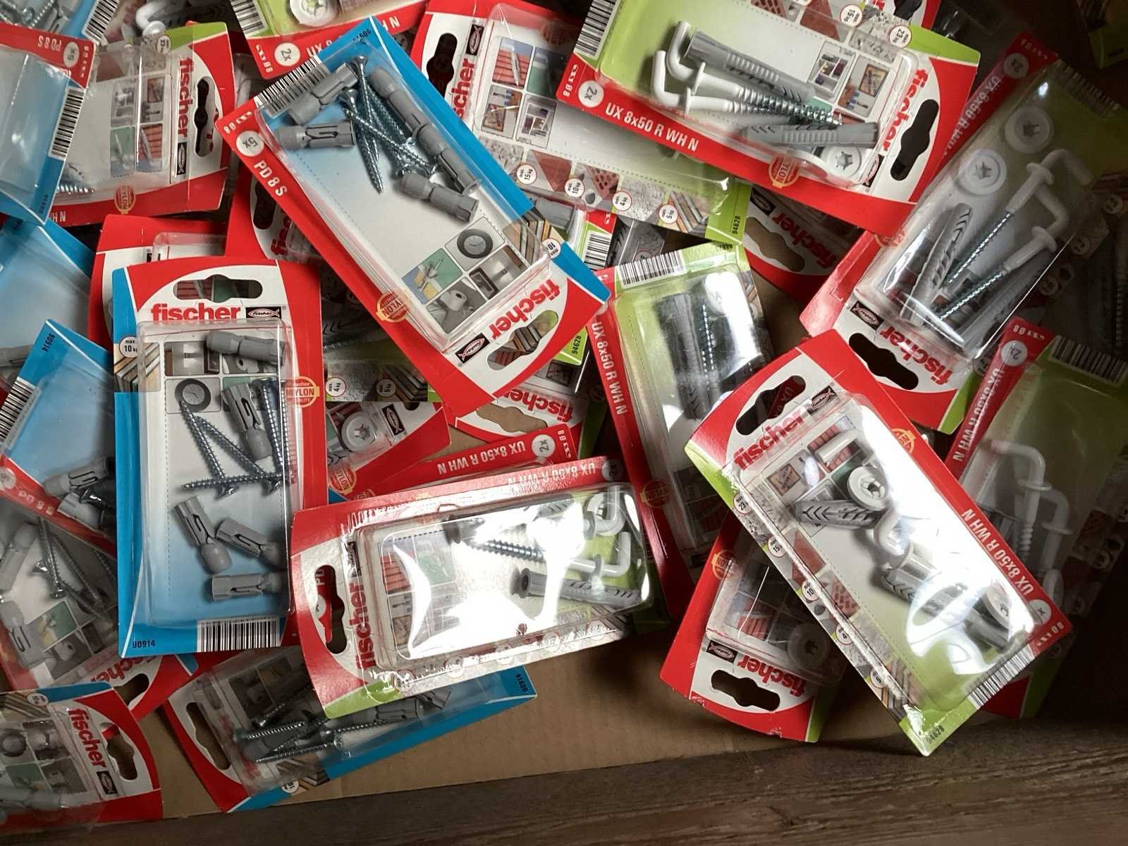 Diverse bevestigingsmaterialen in blisterverpakking. Pluggen, ankers, klemmen Merk: Fischer