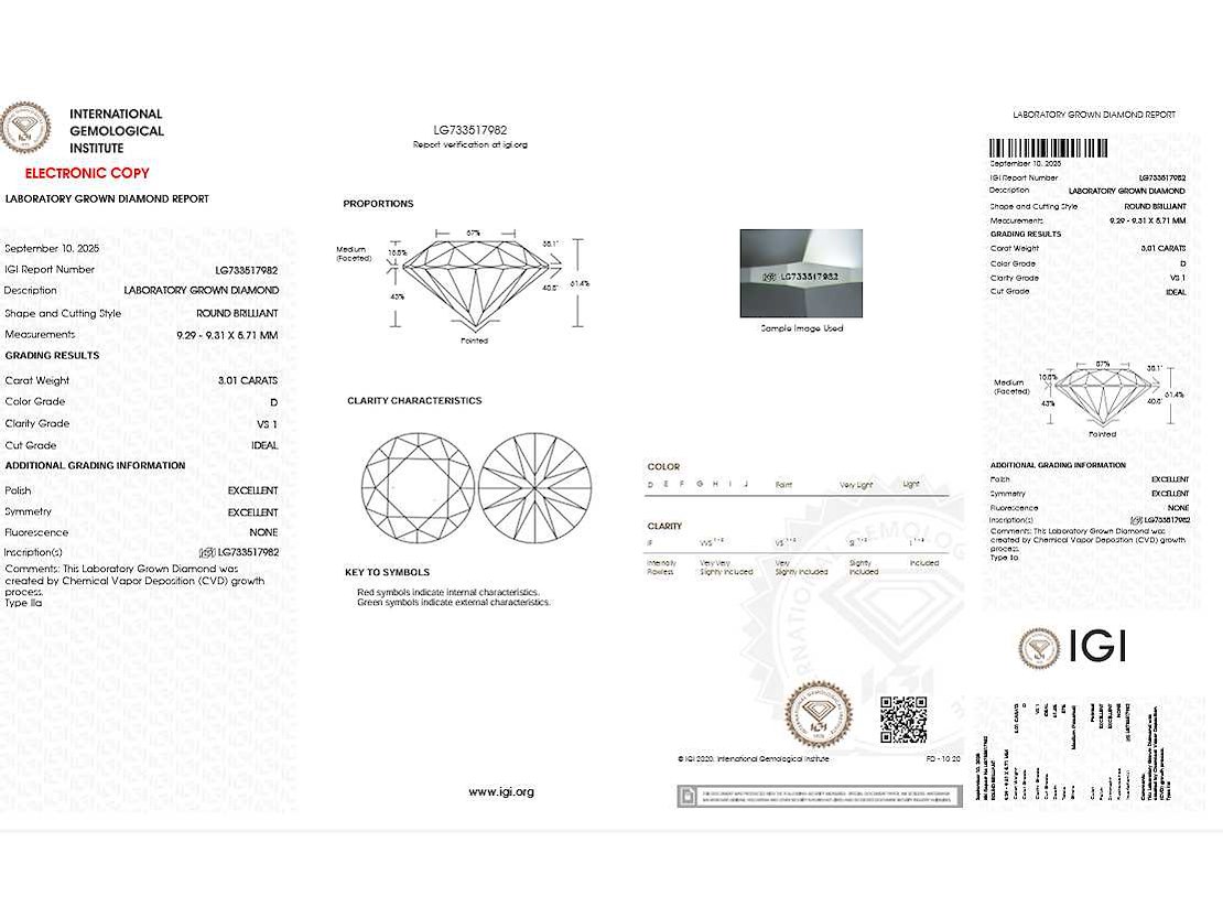 De kwaliteit is overgenomen uit het bijhorende certificaat. De ringmaat wordt naar wens aangepast, hiervoor wordt contact opgenomen met de koper binnen de 48u na betaling. Bezorgtermijn 3 dagen Voornaamste diamant: Labgrown diamant (CVD) Kleur diamant: D Gewicht diamant: 3.01ct Zuiverheidsgraad diamant: VS1 Certificaat: 733517982 Materiaal: 18krt geelgoud Leveringsvoorwaarden: Per koerier